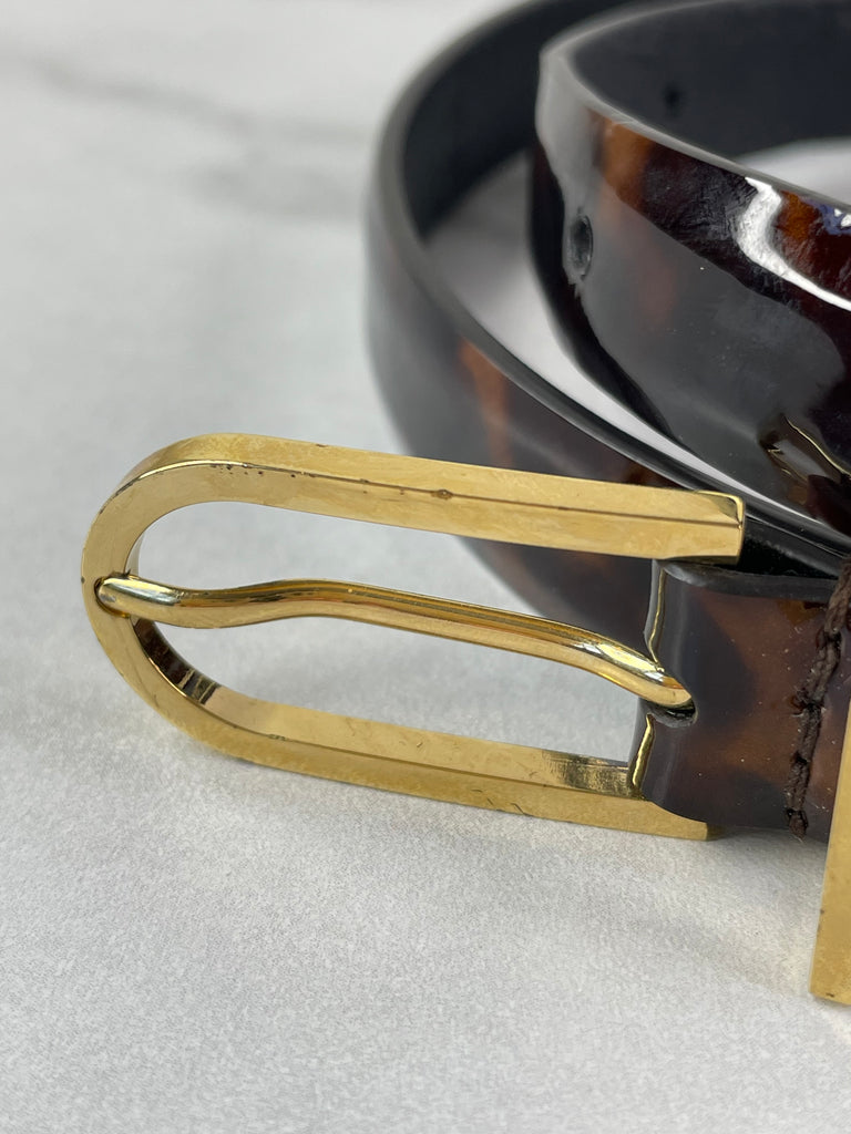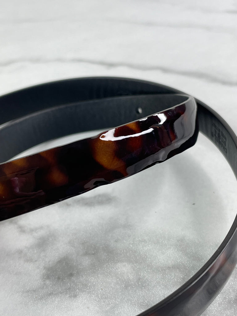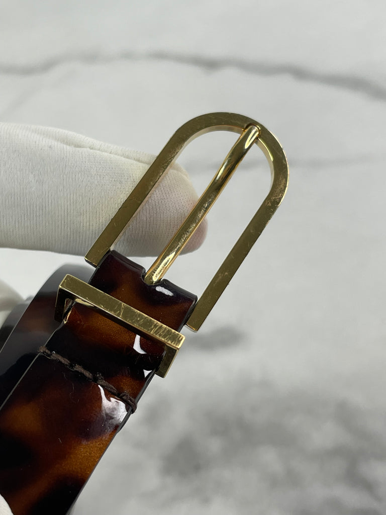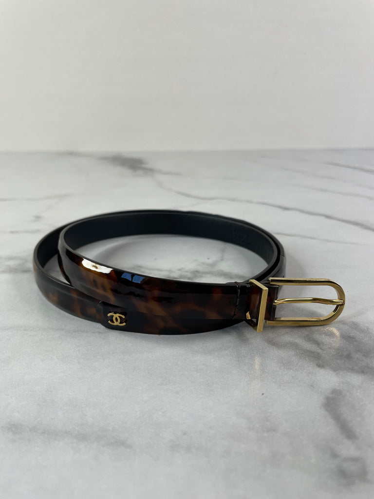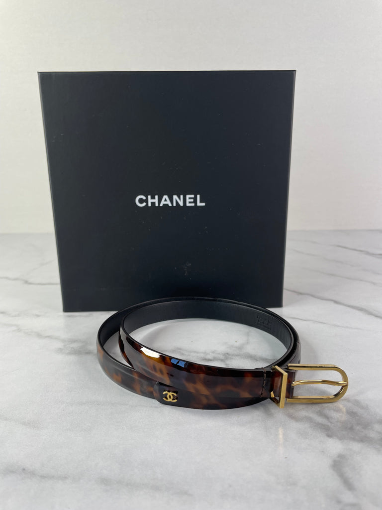 CHANEL CC Brown Leopard Print Patent Leather Skinny Belt Size 75/30