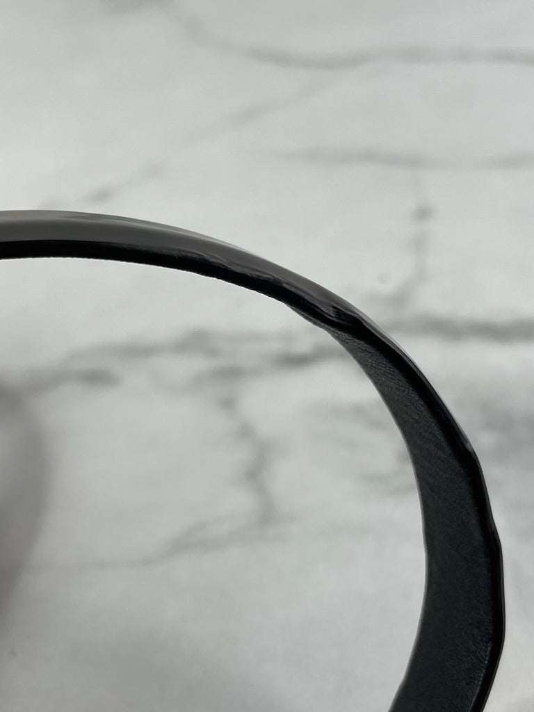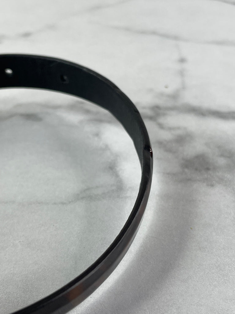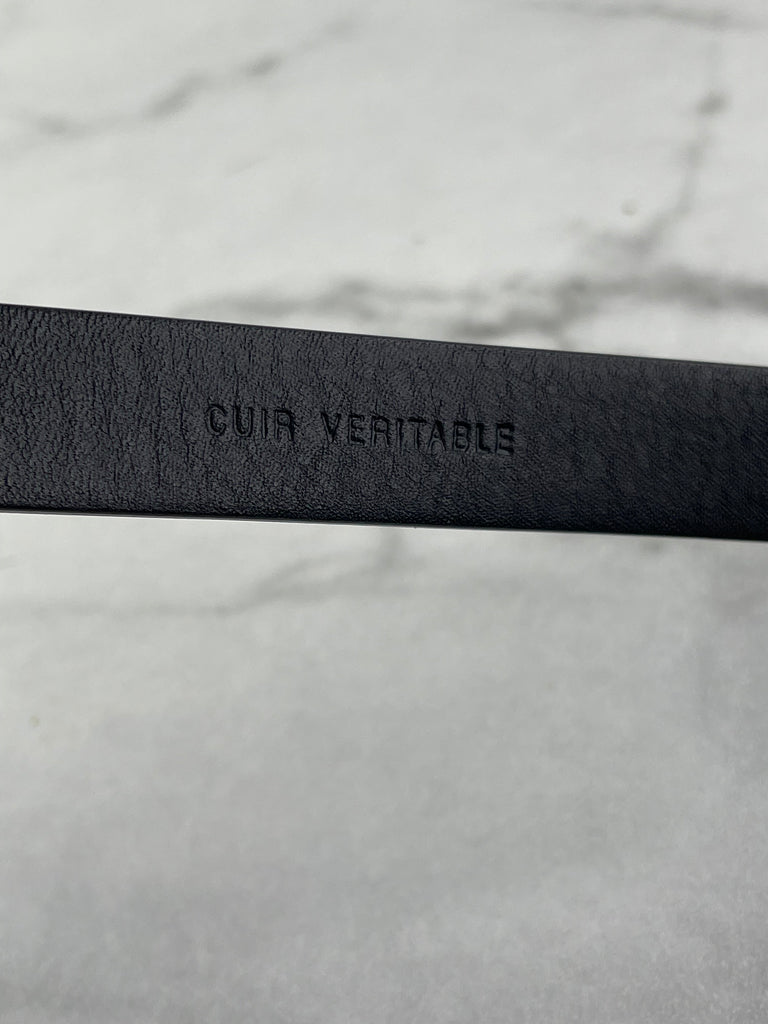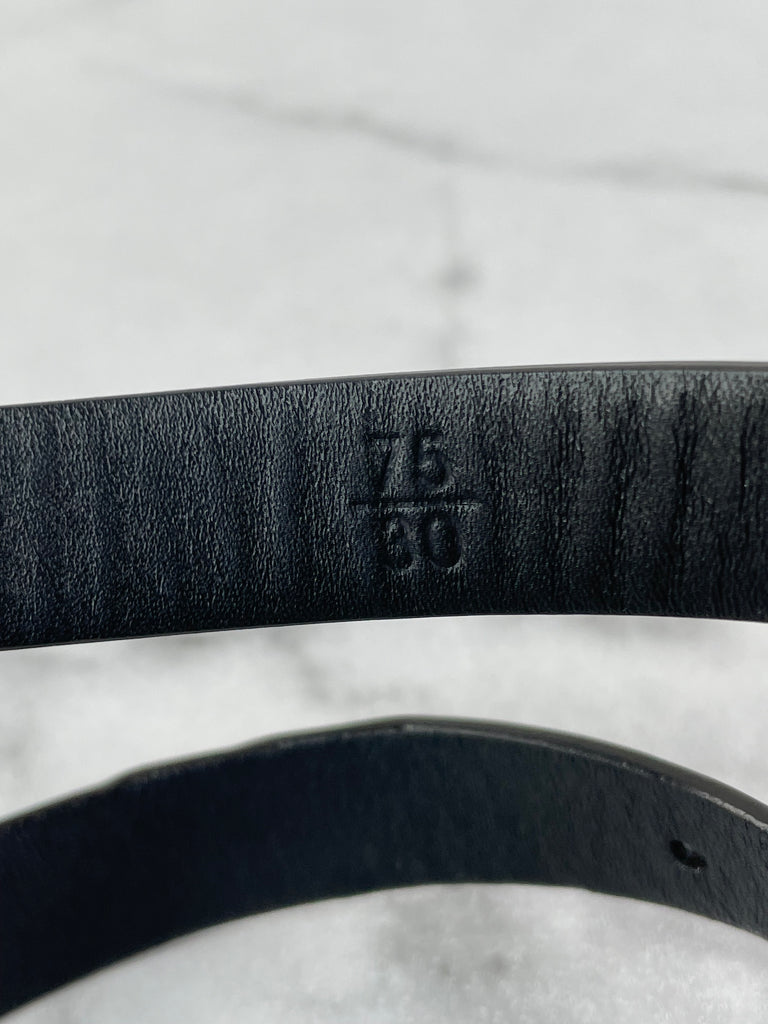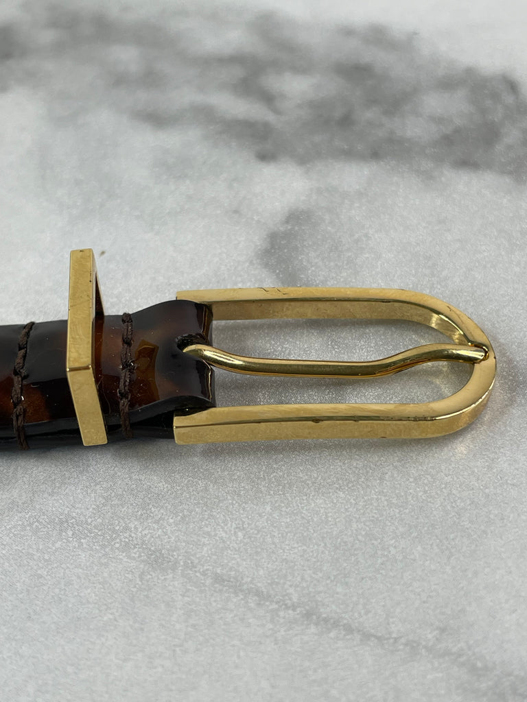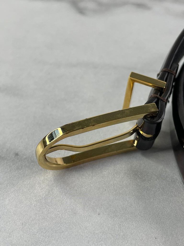 Condition: Excellent condition. 8.5/10. Hardware has surface wear and some very tiny tarnish spots. Belt has some very minor indents/creases on edges.