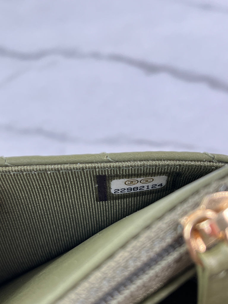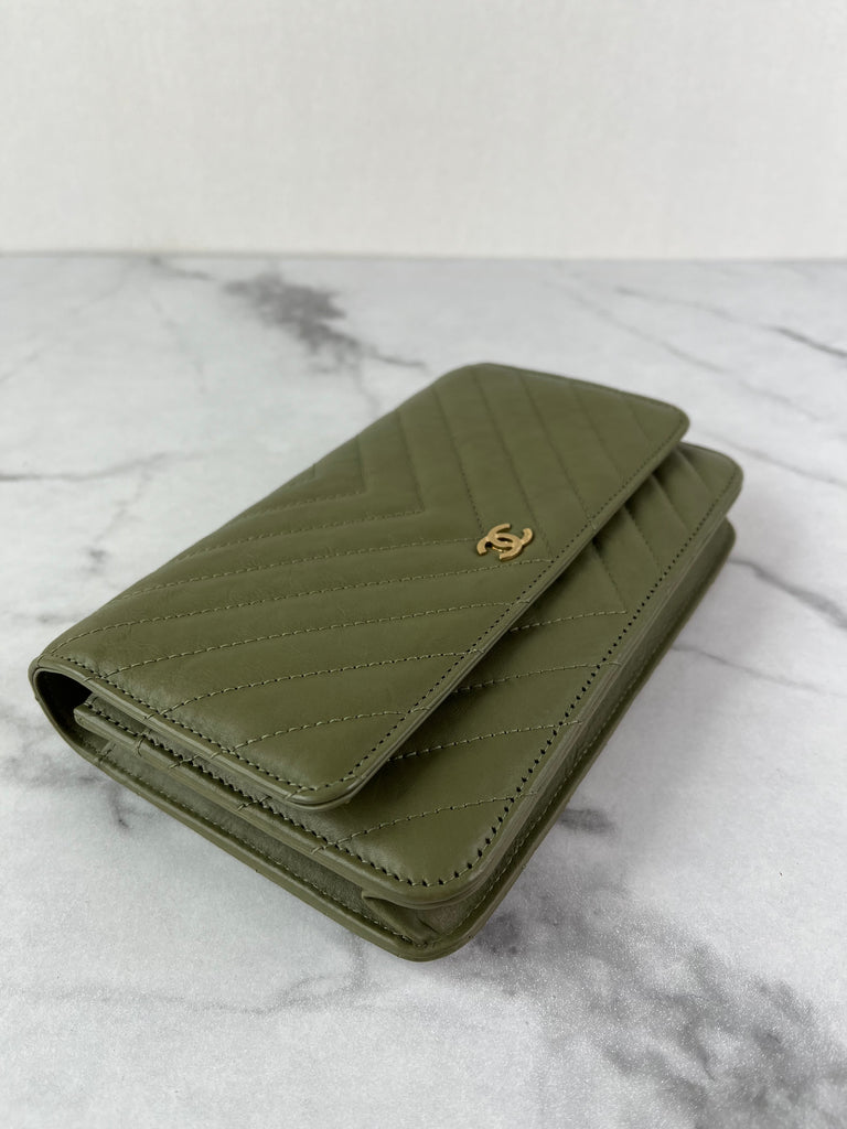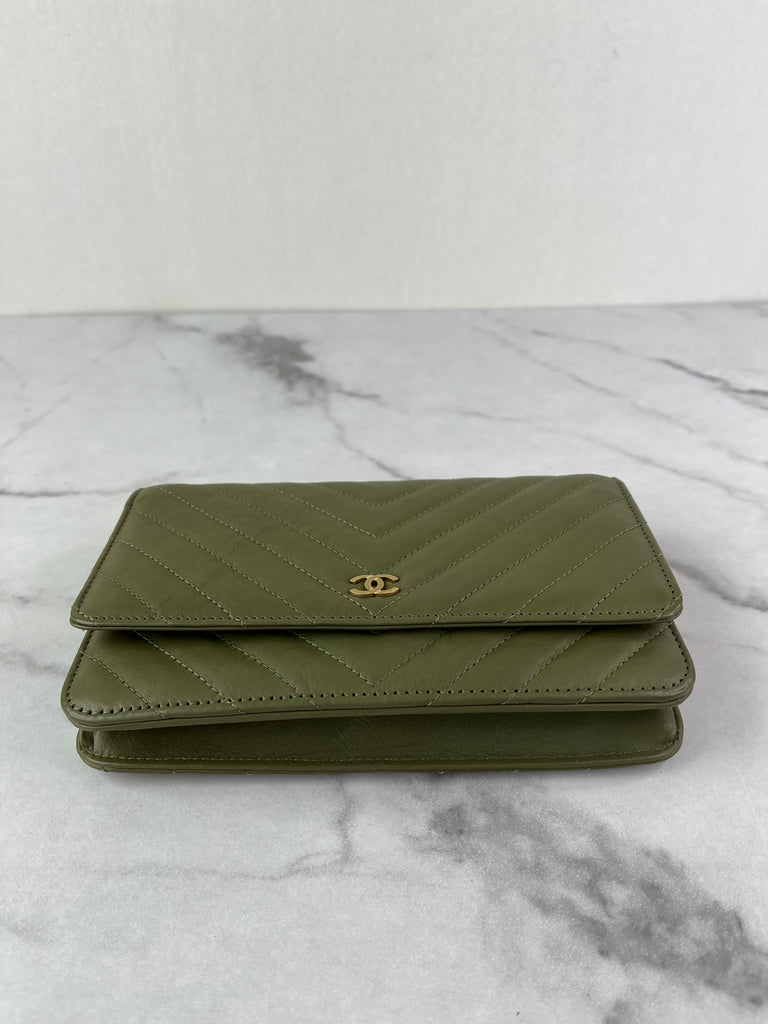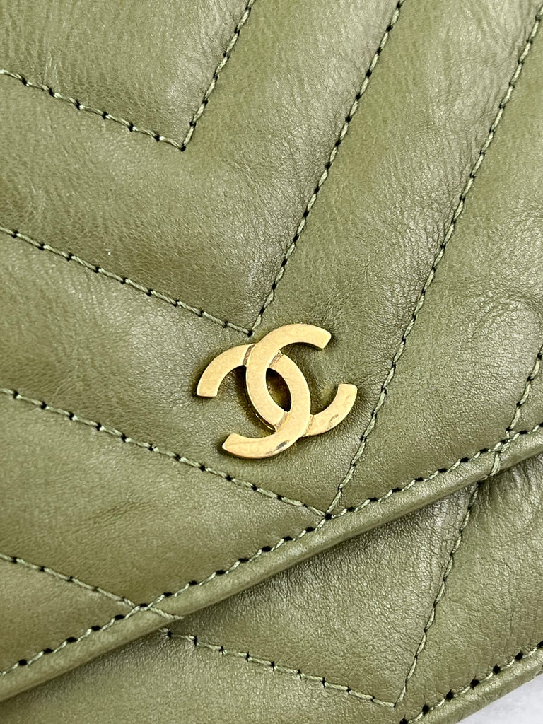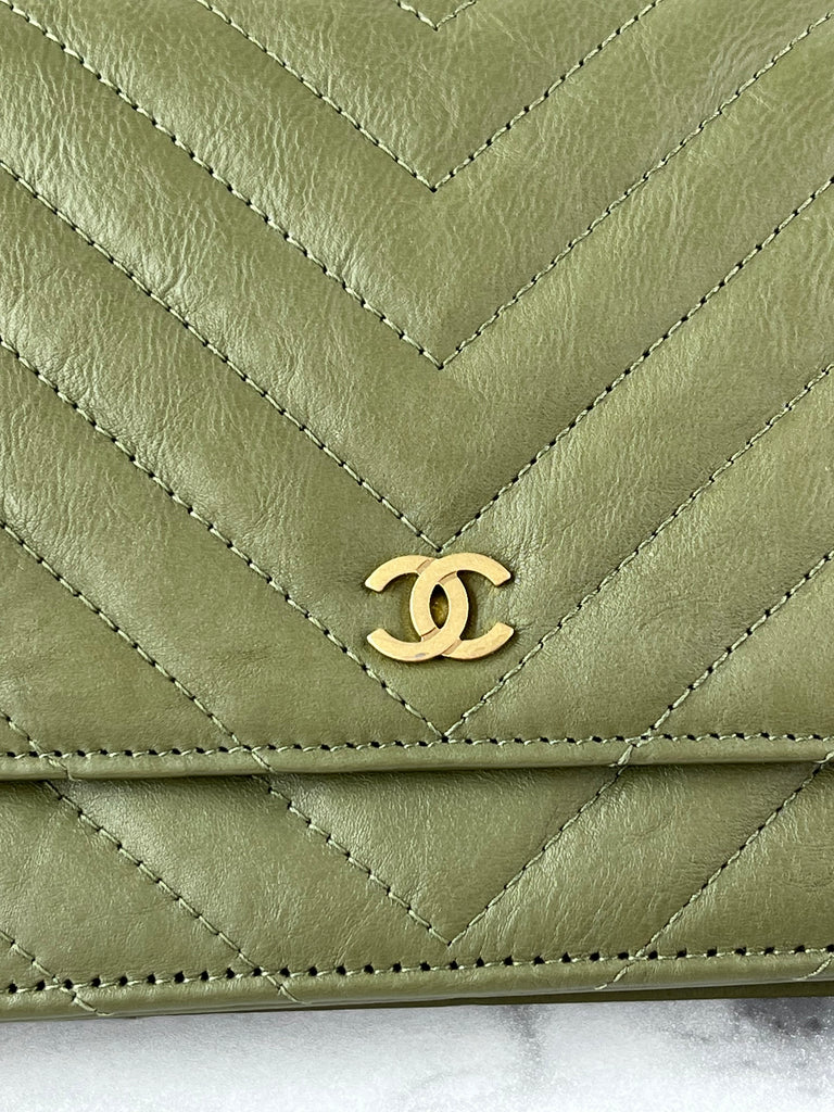 CHANEL Chevron Green Wallet on Chain Crossbody/Shoulder Bag