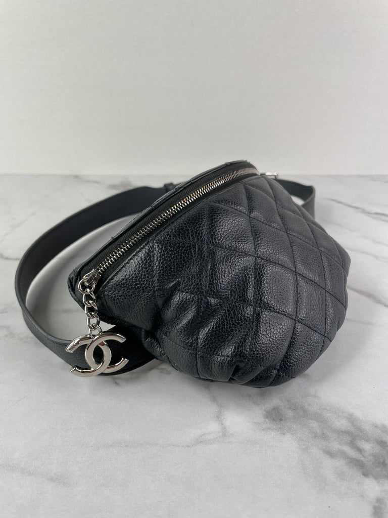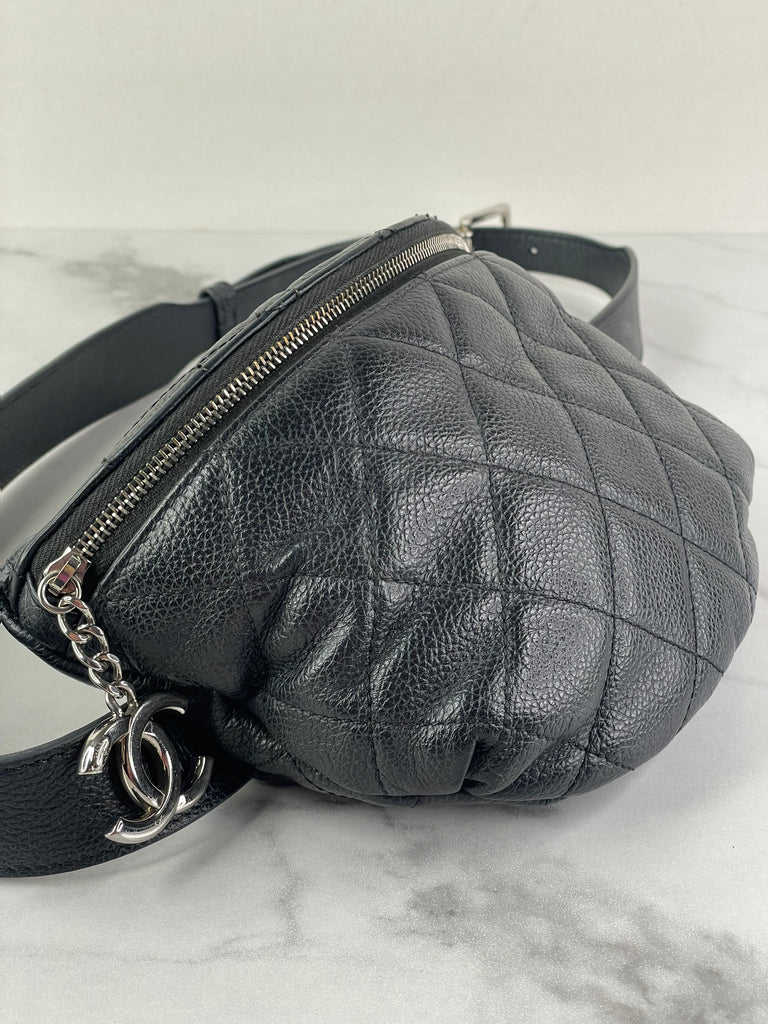 CHANEL Uniform CC Black Grained Calfskin Quilted Waist Belt/Sling Bag