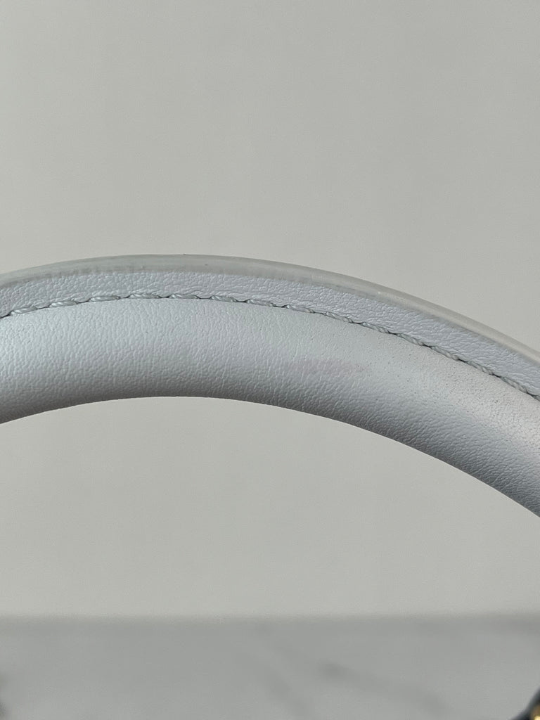 Condition: Like new. 9.7/10. Plastic protects hardware. Minor indent on back leather opening flap. A couple extremely faint marks on top handle.