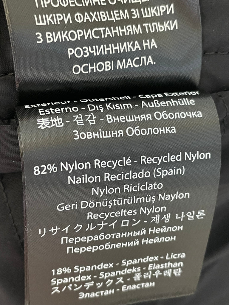 Details: VANNA is a mixed-media recycled quilted down jacket with plush shearling detailing throughout. Water-resistant and repellent, a spread collar and leather tape detailing add striking lines to the regular cut. Expertly tailored, a hybrid winter staple with a contemporary design.