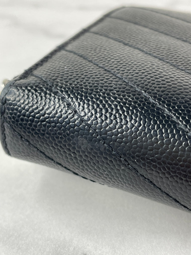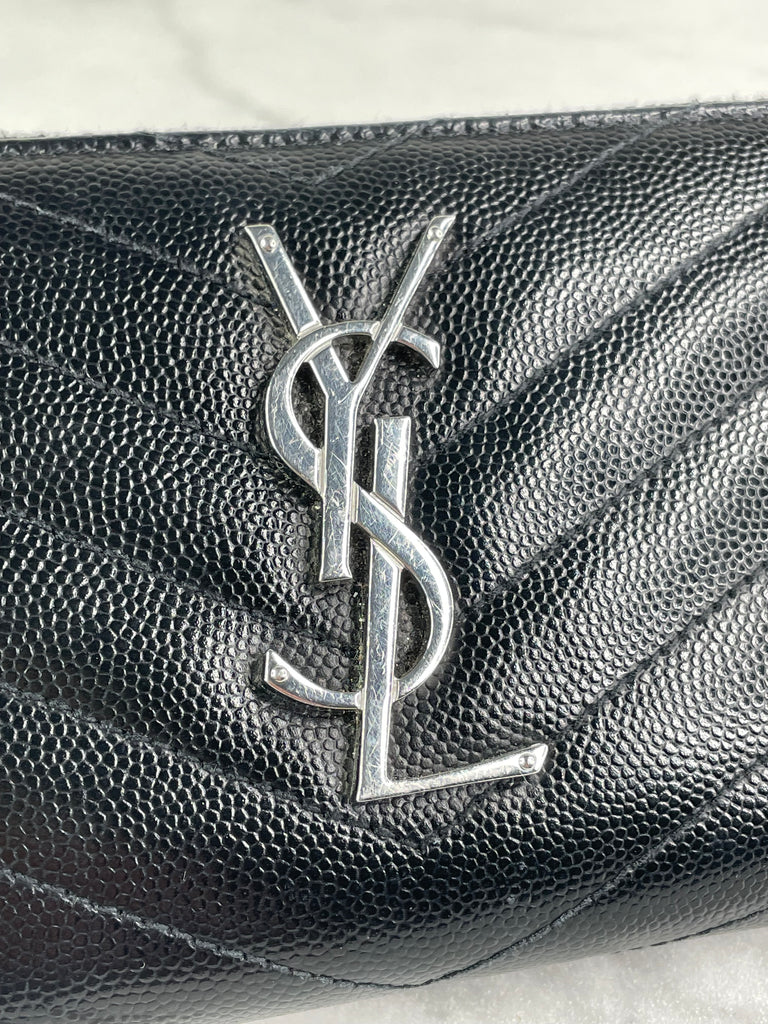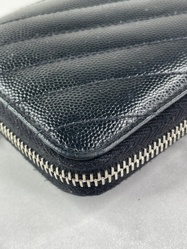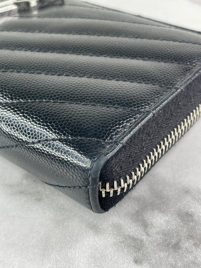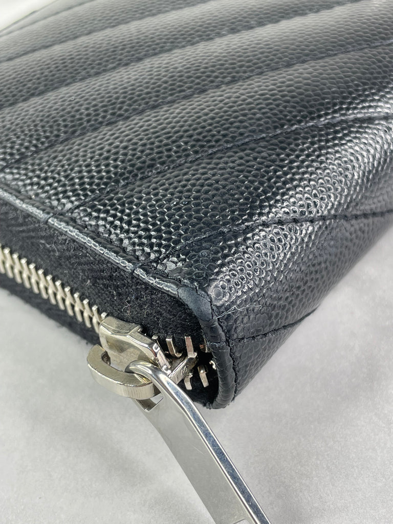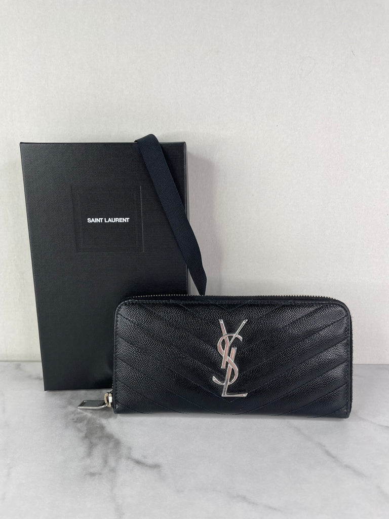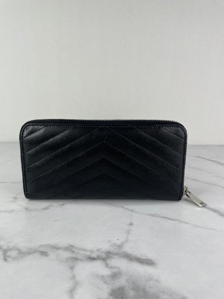 SAINT LAURENT BLACK CASSANDRE MATELASSÉ ZIP AROUND WALLET IN GRAIN DE POUDRE LEATHER