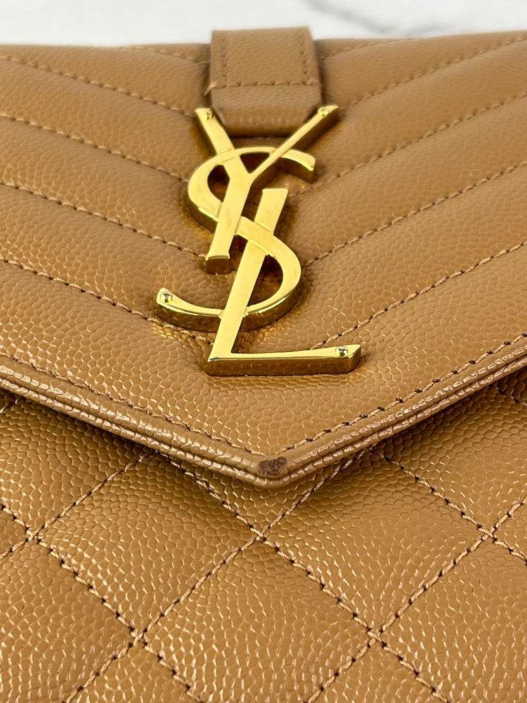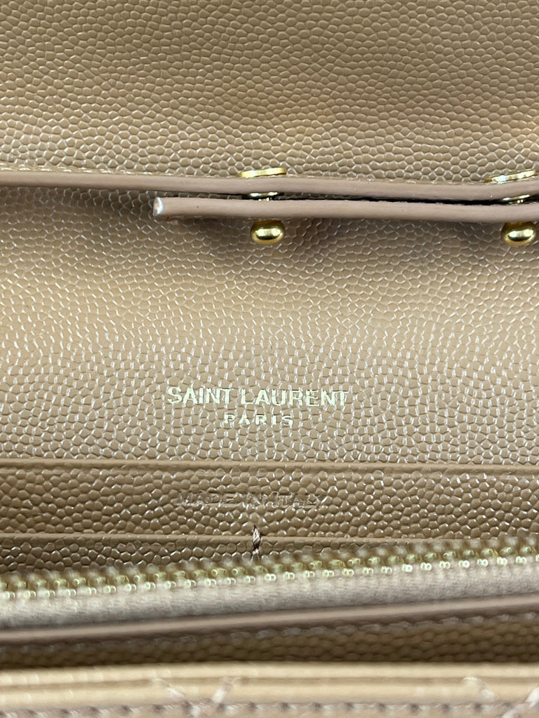 Saint Laurent Dune Grain De Poudre Mixed Matelasse Triquilt Monogram Chain Wallet Crossbody/Shoulder Bag
