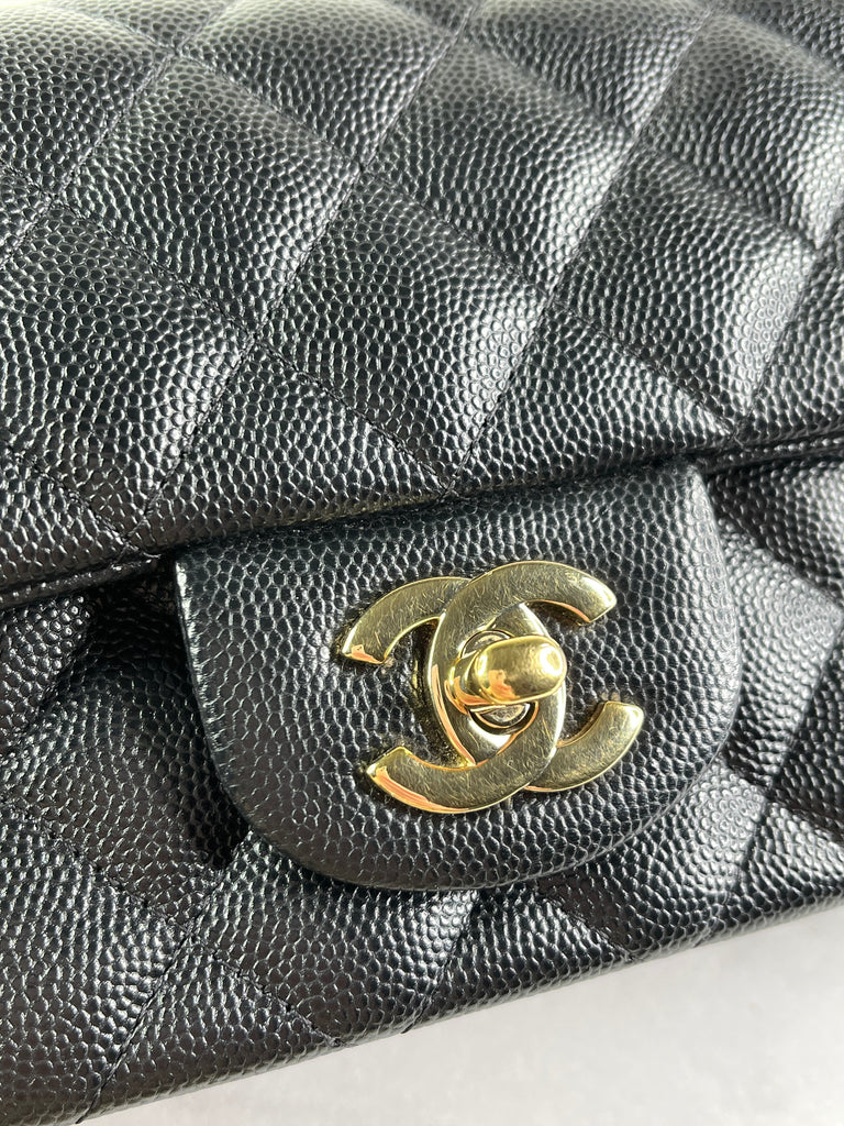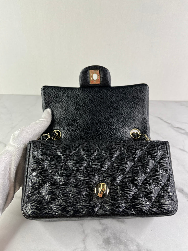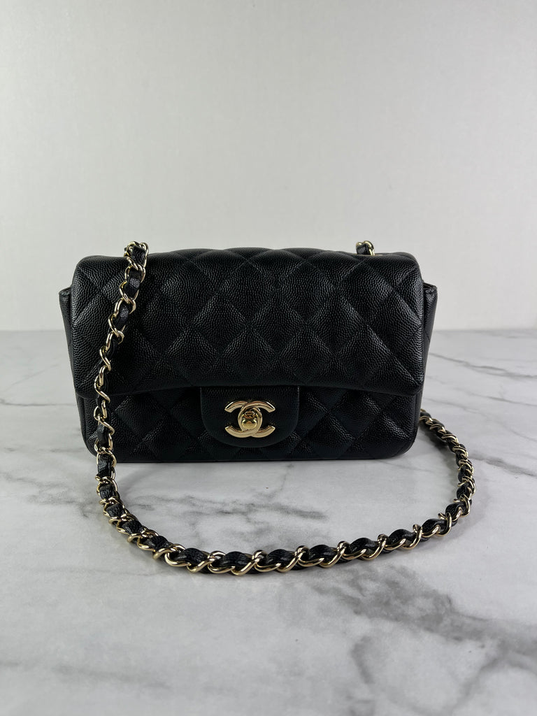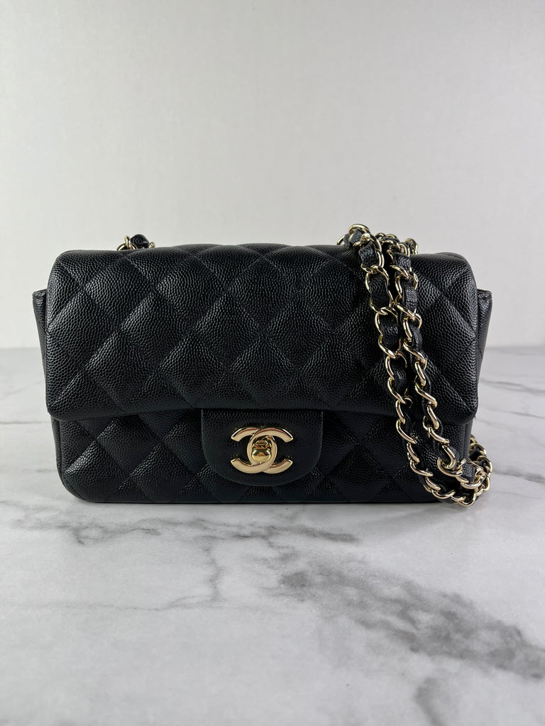 CHANEL Black Caviar Quilted Mini Rectangular Flap Bag