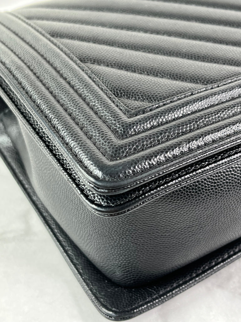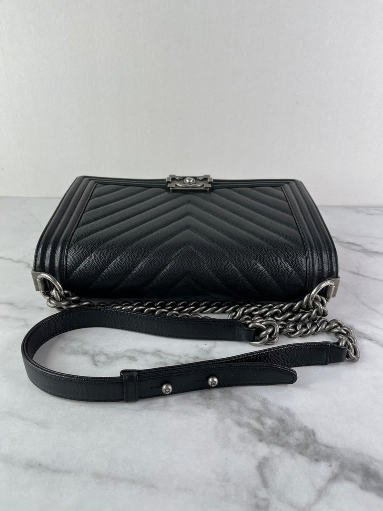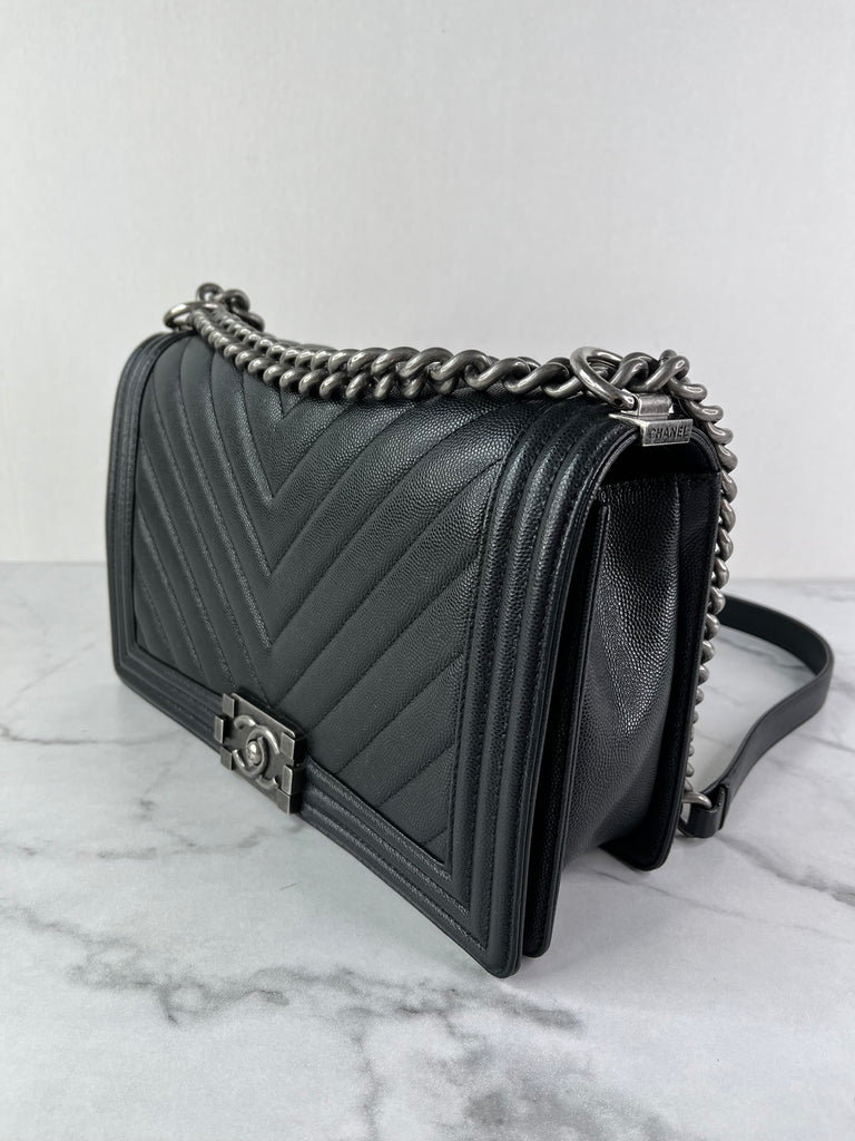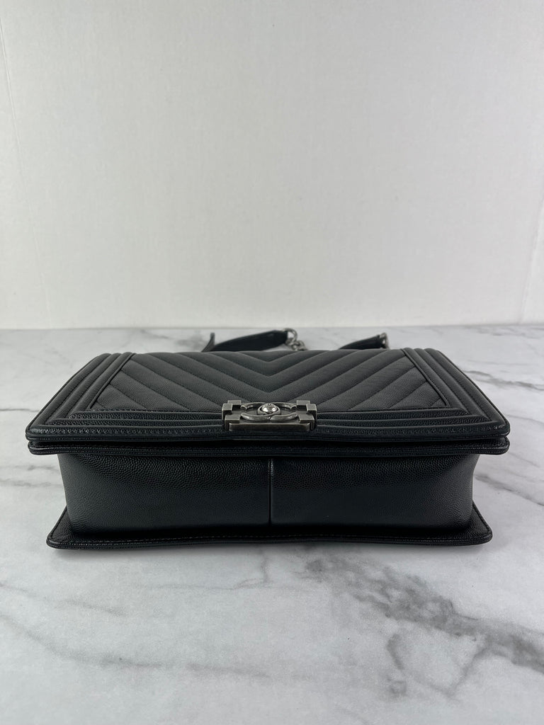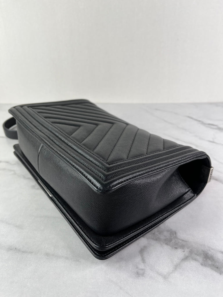 CHANEL Black Chevron Caviar Large Boy Crossbody/Shoulder Bag