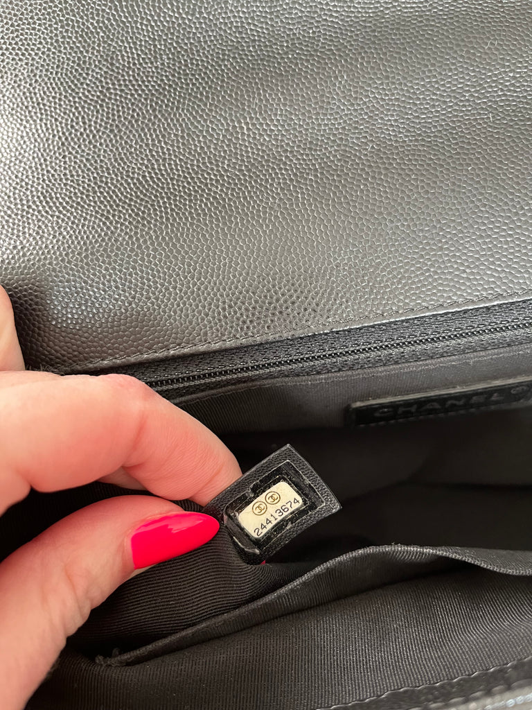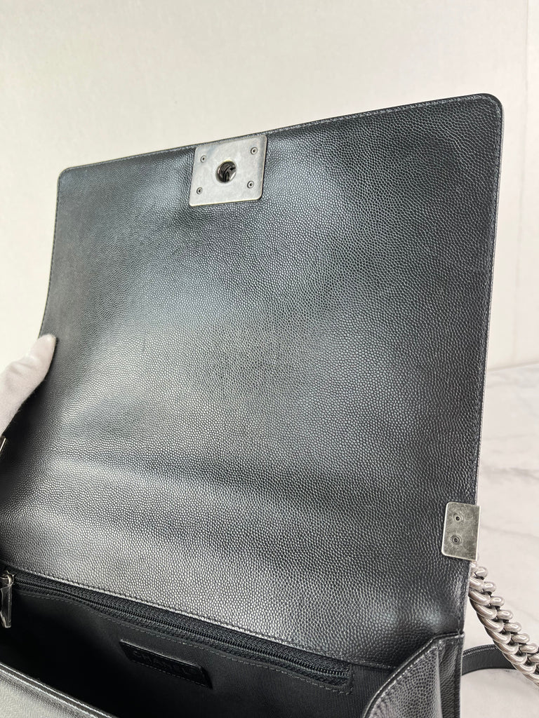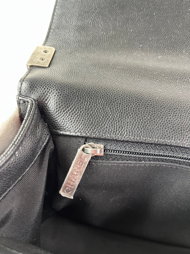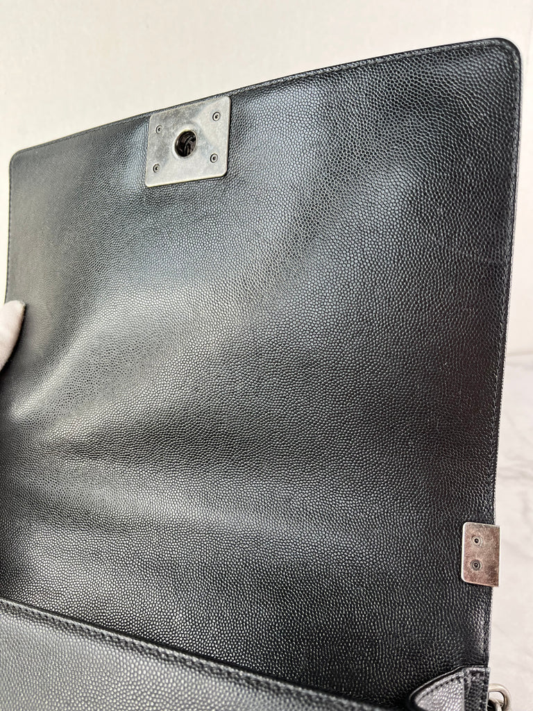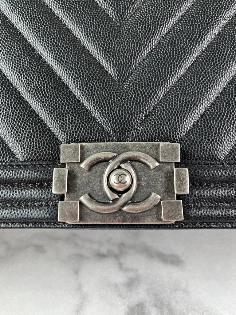 CHANEL Black Chevron Caviar Large Boy Crossbody/Shoulder Bag