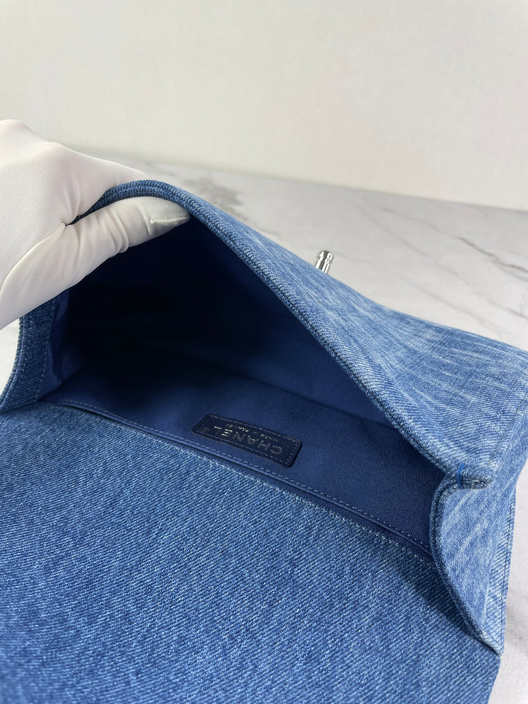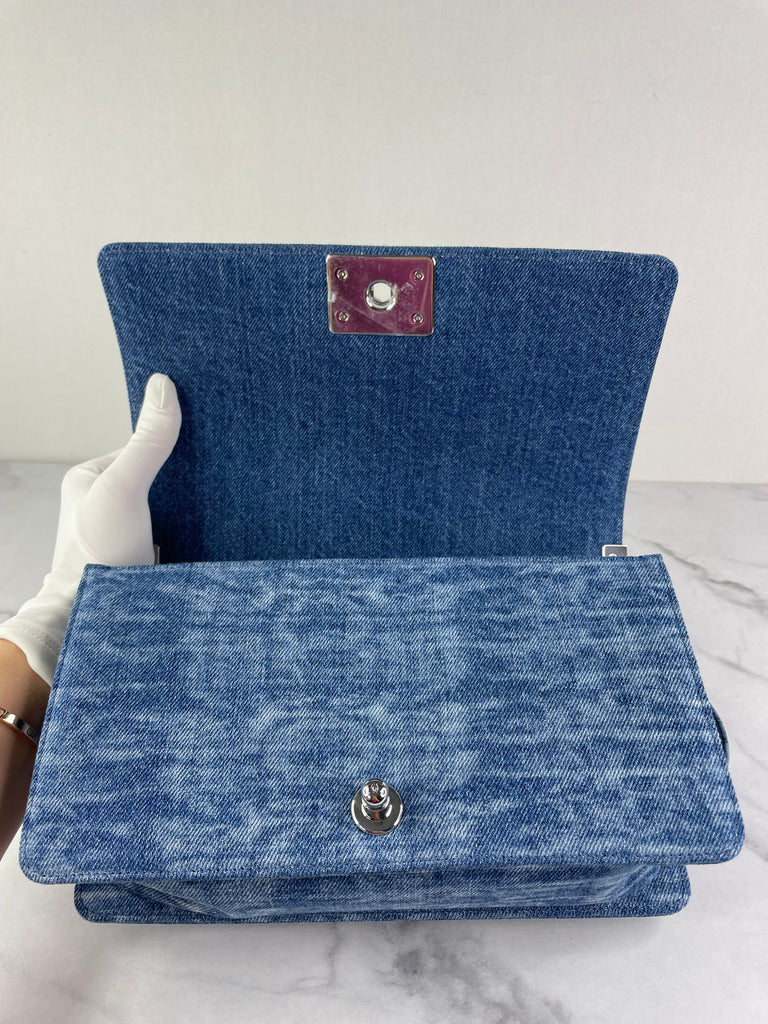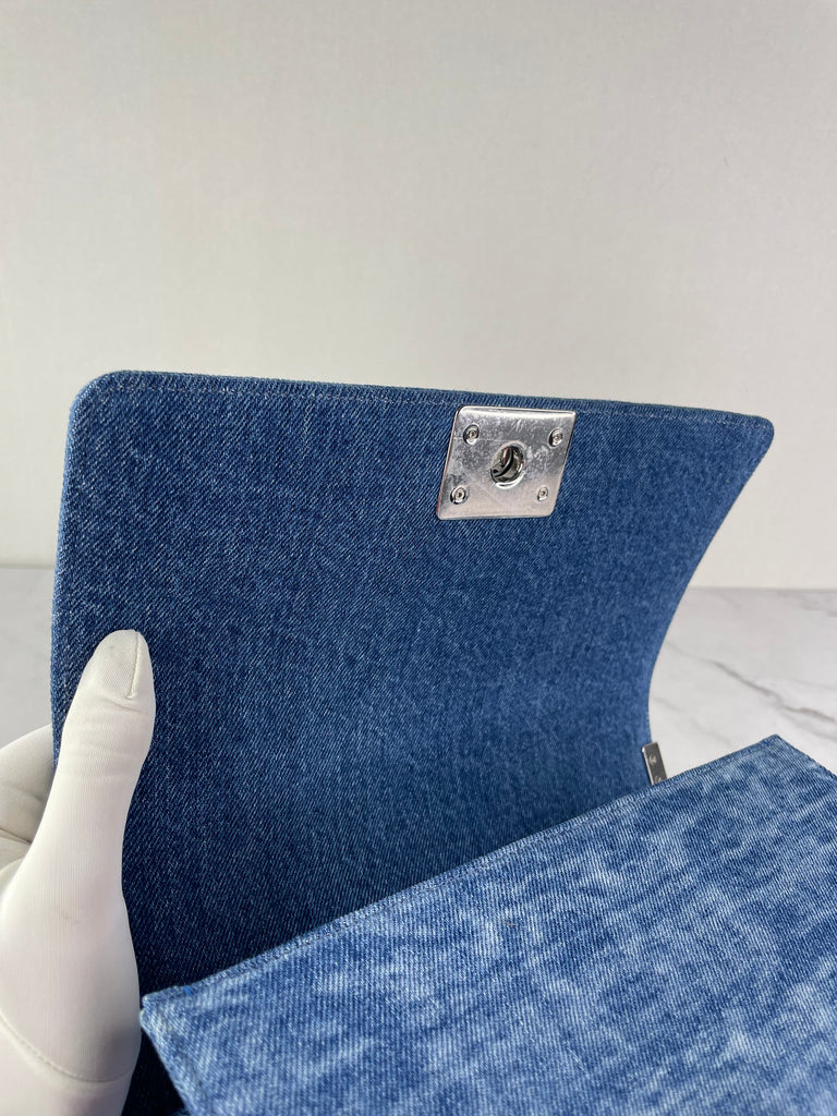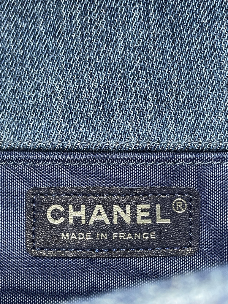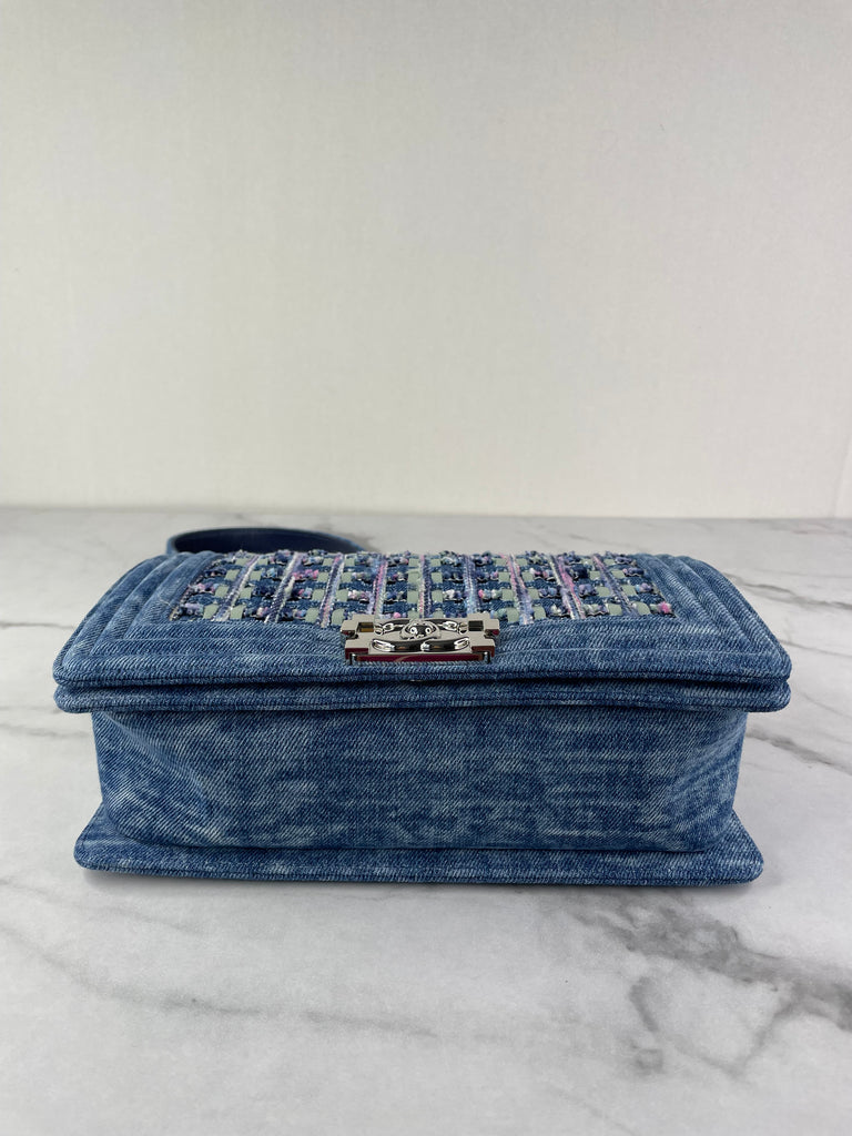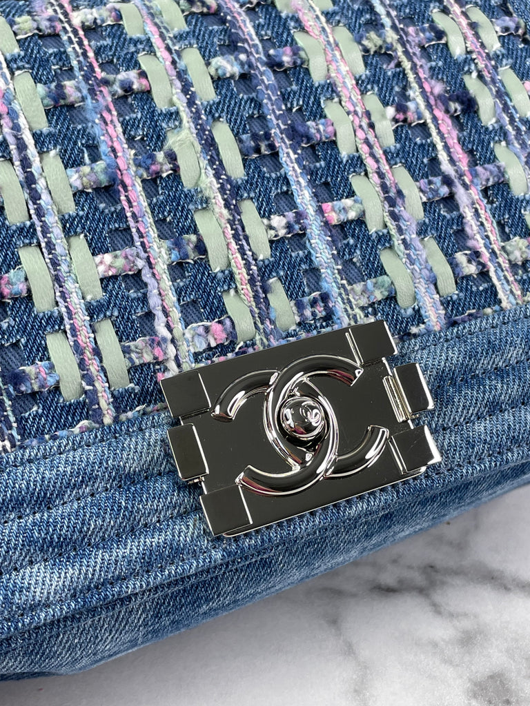 CHANEL Blue Denim and Woven Tweed Medium Boy Bag