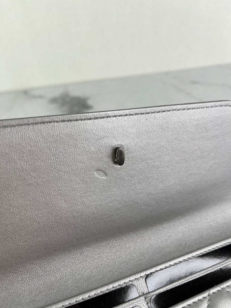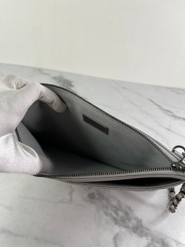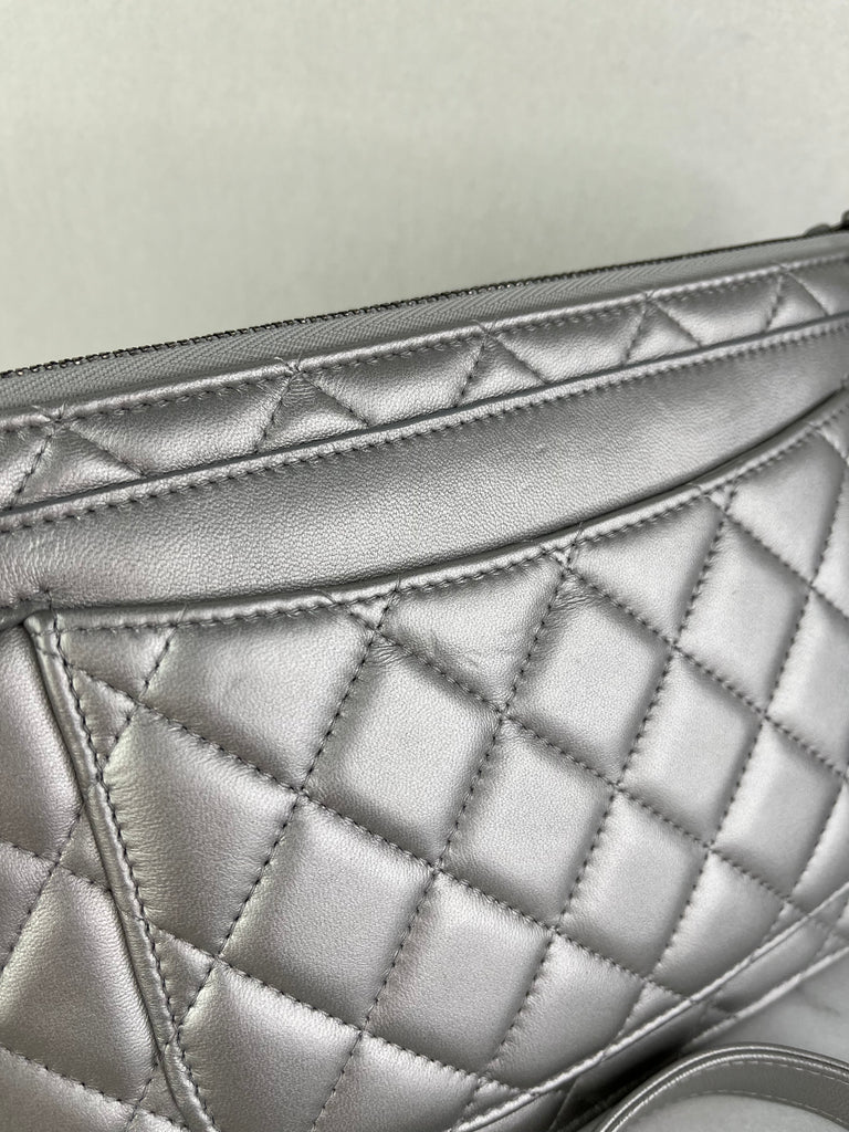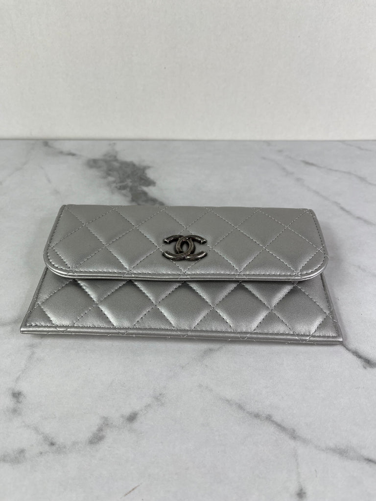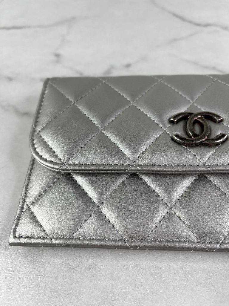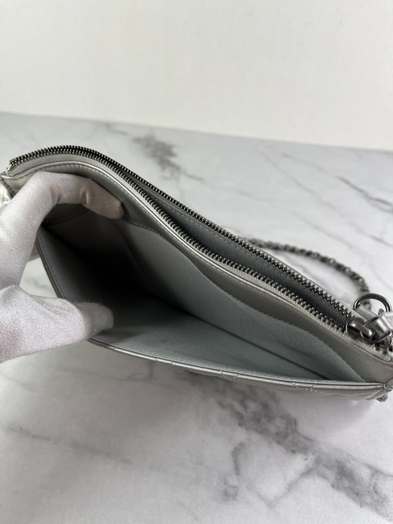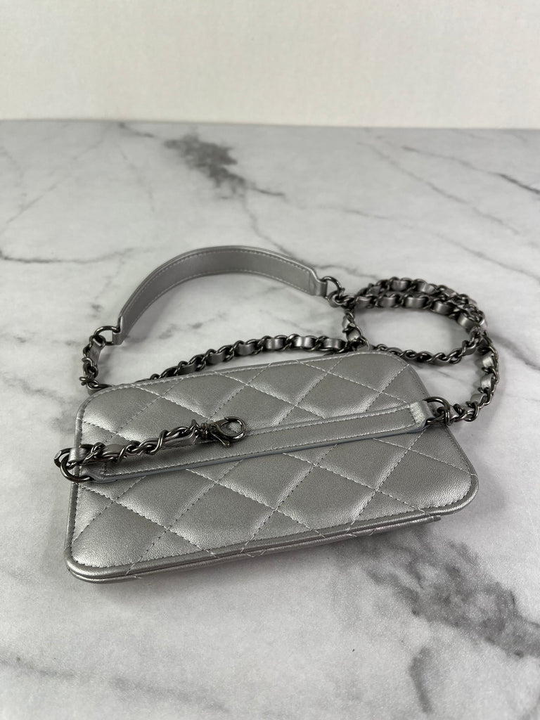 CHANEL Multi Pochette Metallic Silver Quilted Lambskin clutch/wallet/crossbody/shoulder bag