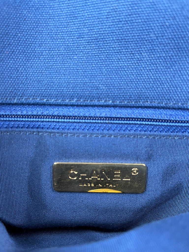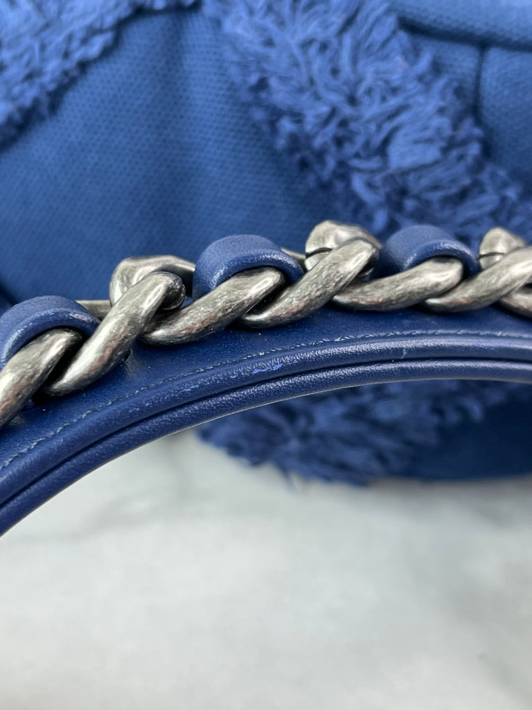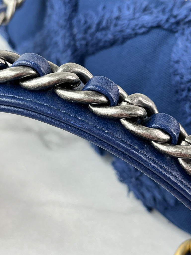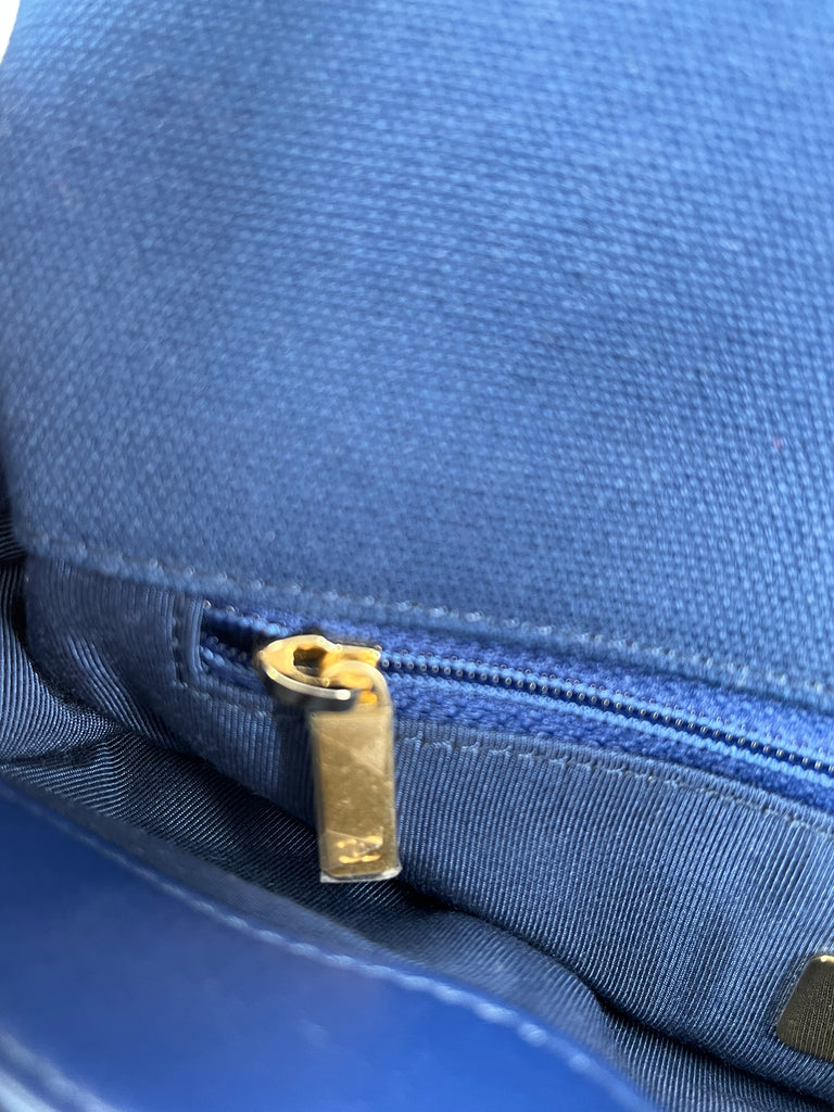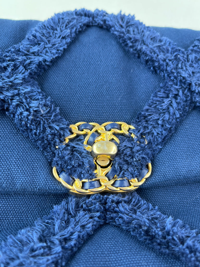 CHANEL Navy Blue Cotton Canvas Quilted Small/Medium Chanel 19 Flap Shoulder/Crossbody Bag