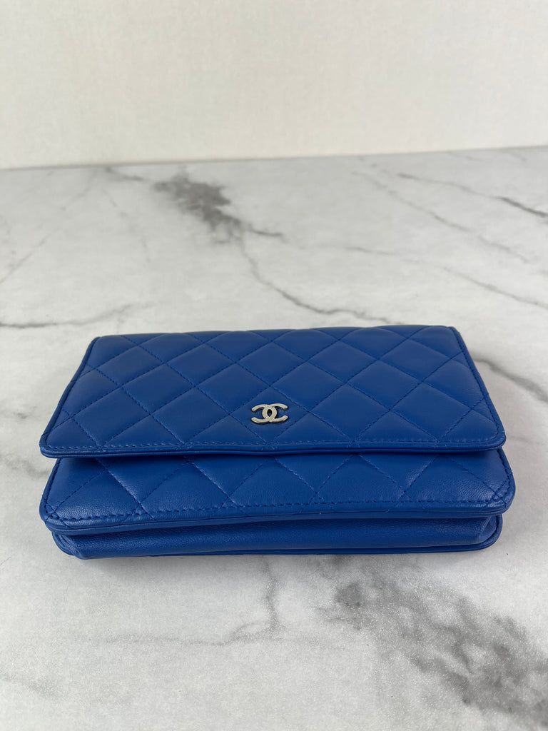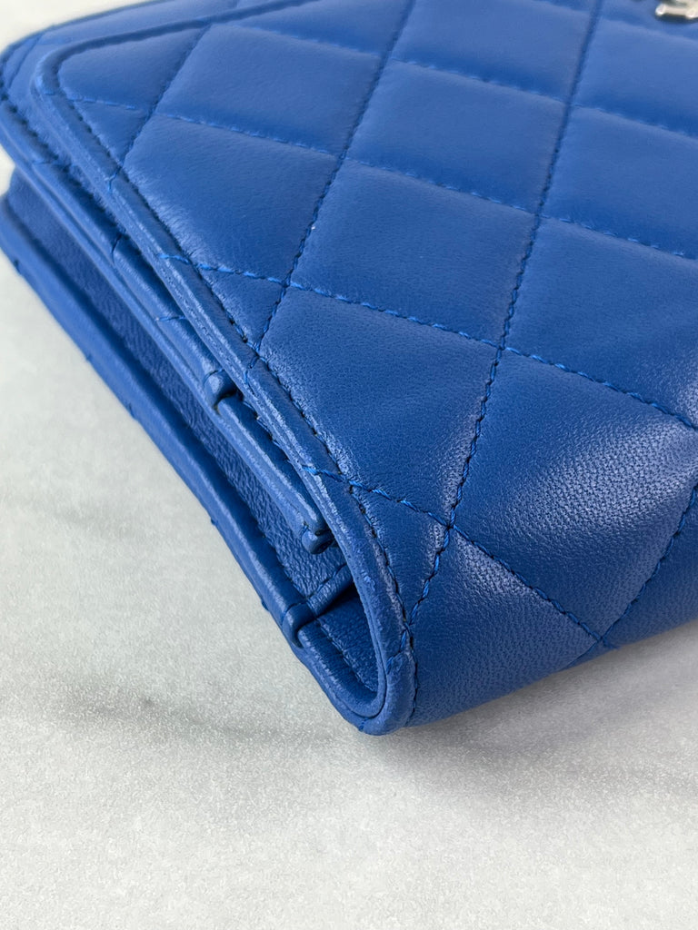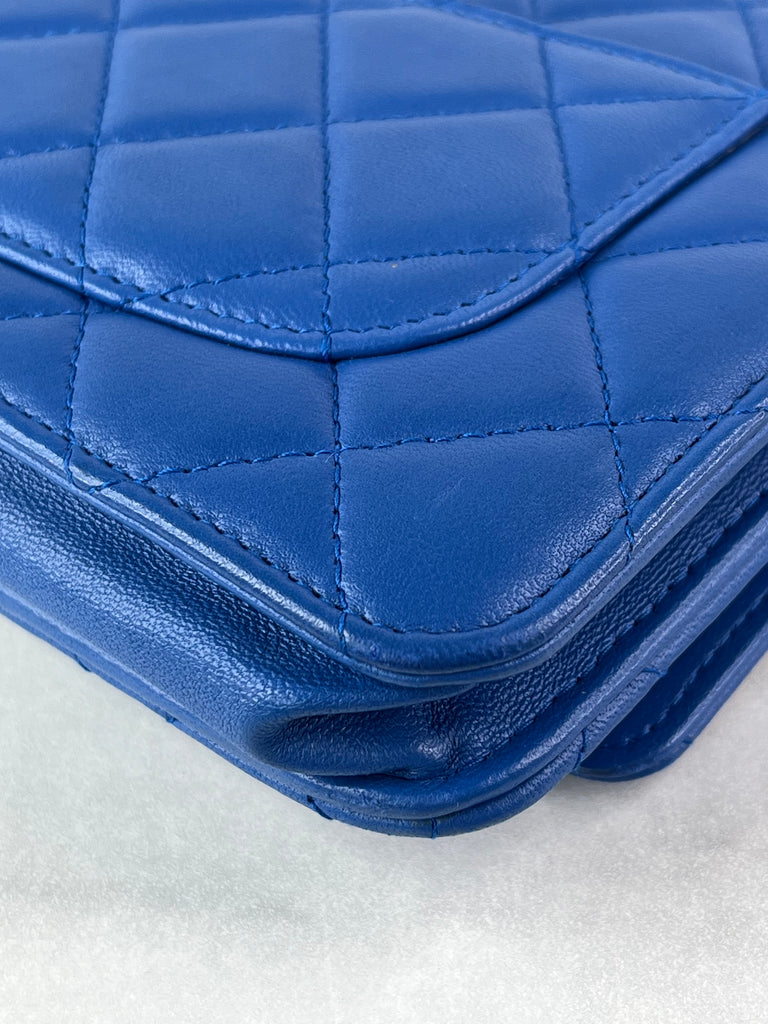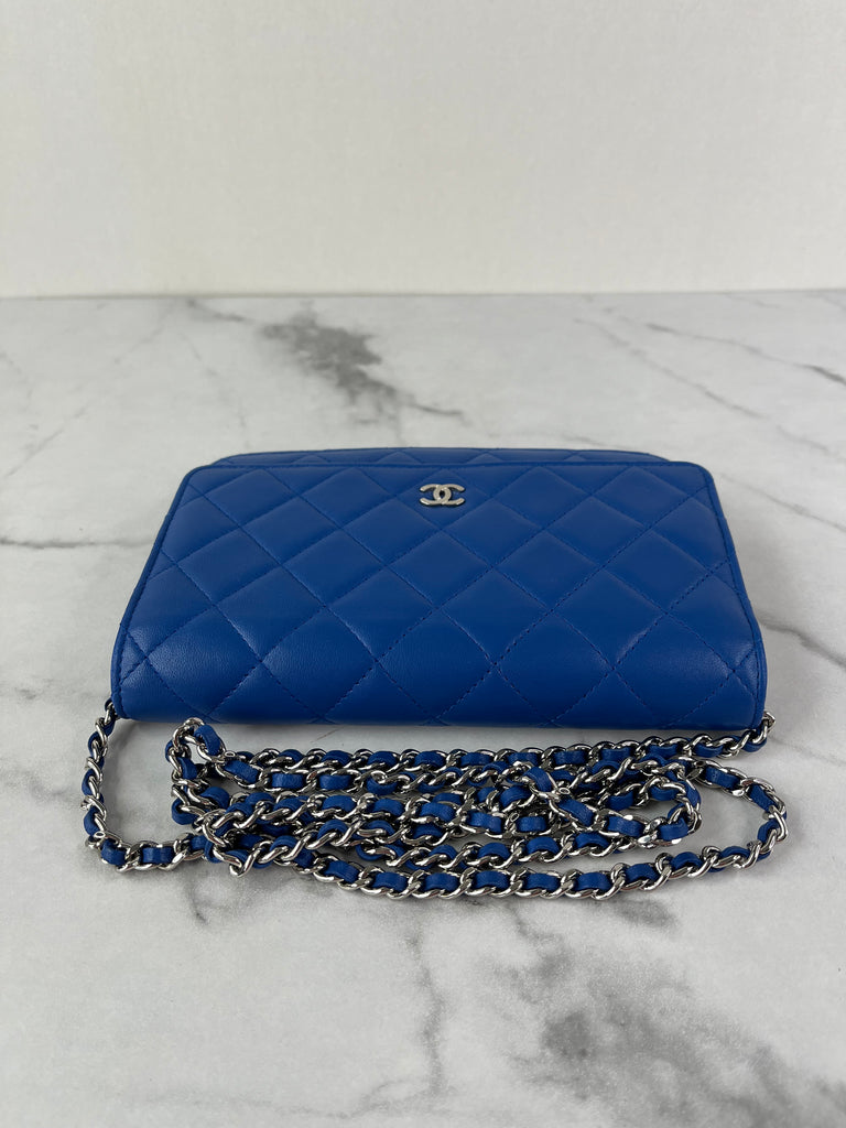 CHANEL Quilted Lambskin Blue Wallet on Chain Crossbody/Shoulder Bag