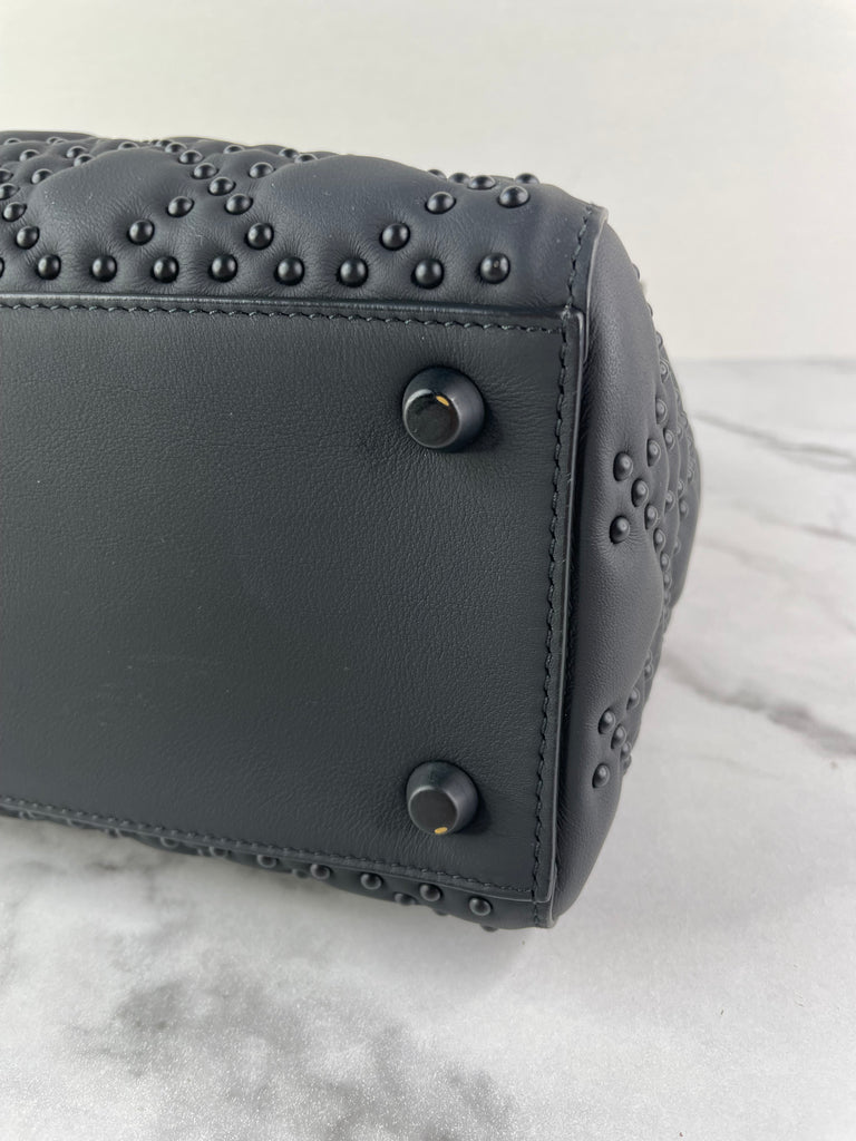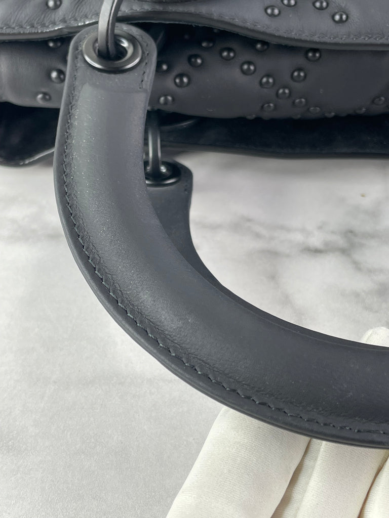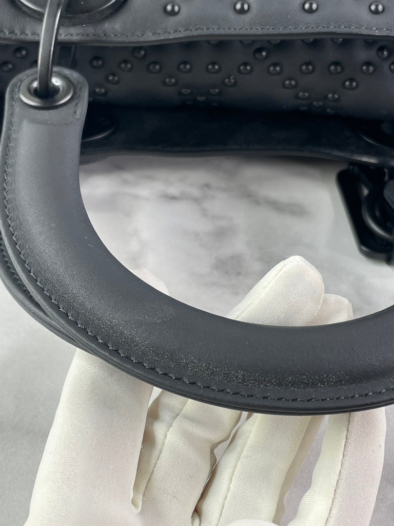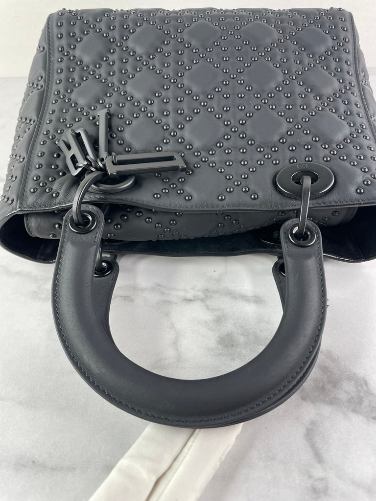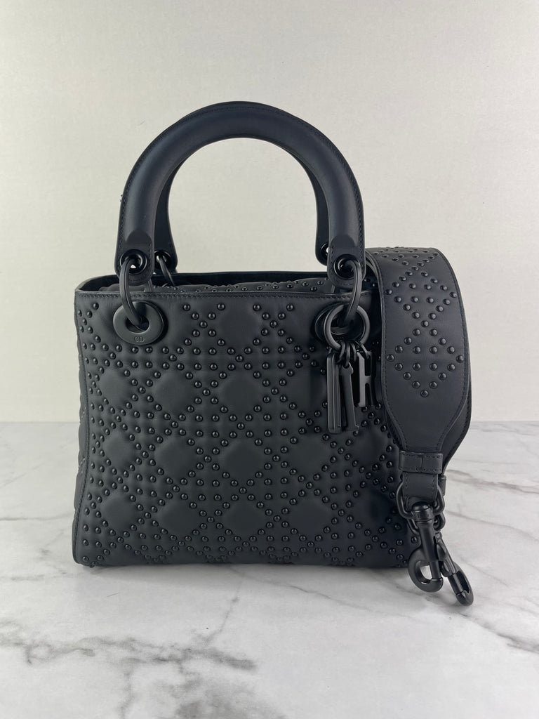 • Christian Dior Ultra Black Matte Calfskin Cannage Studded Medium Supple Lady Dior Crossbody/Shoulder Bag