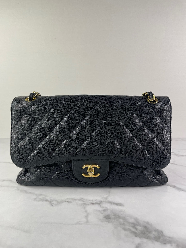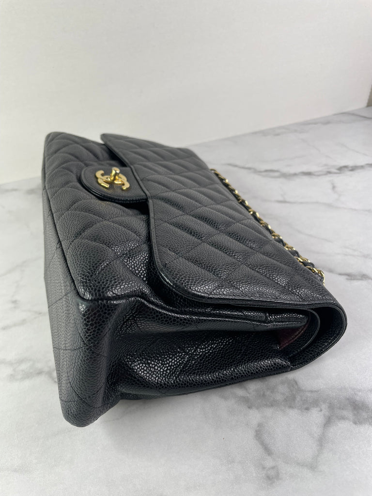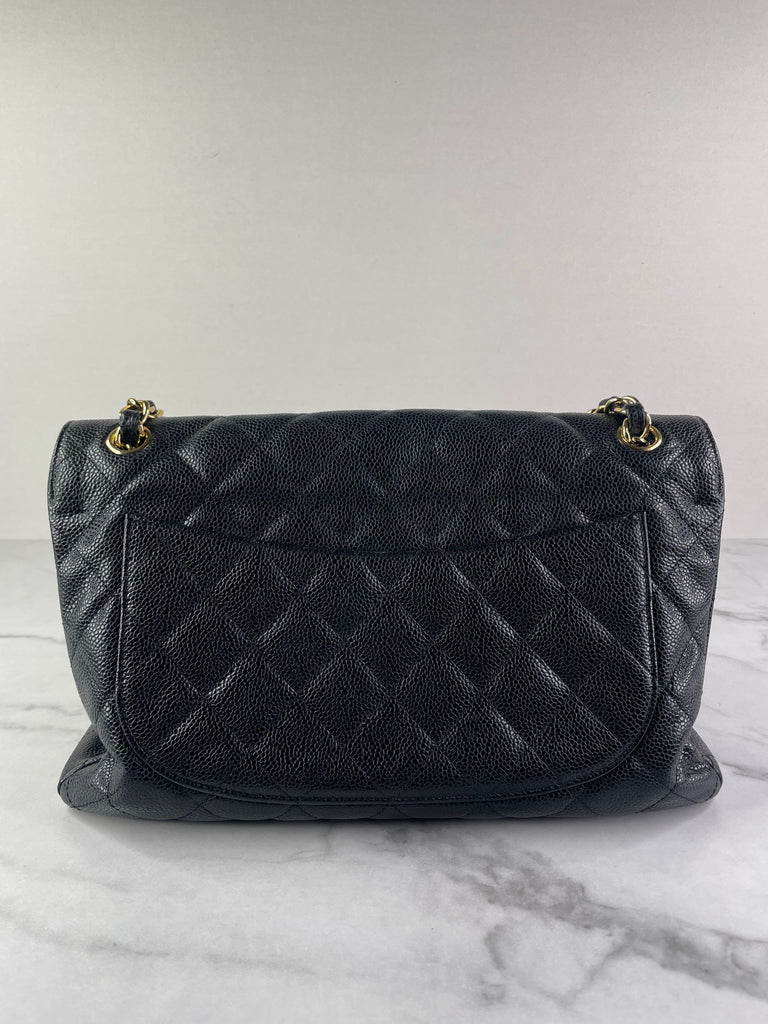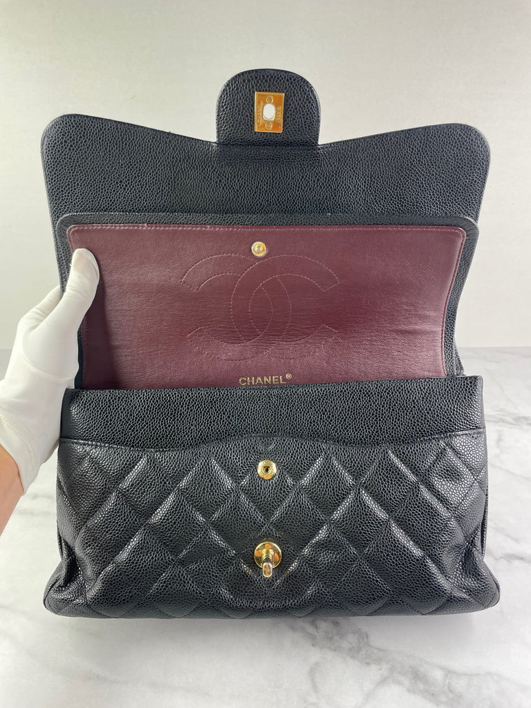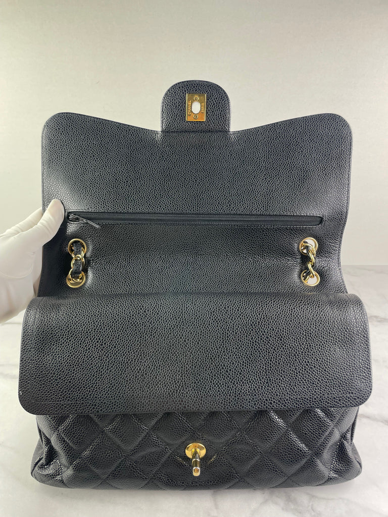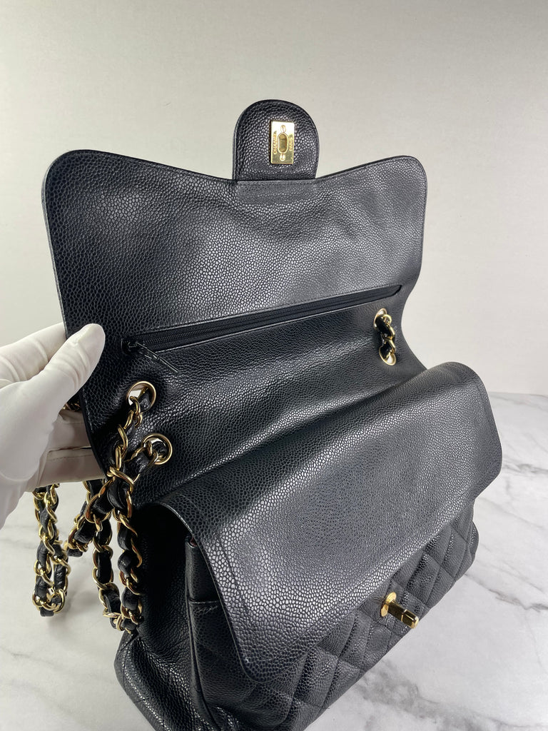 • CHANEL Black Caviar Classic Jumbo Double Flap Bag