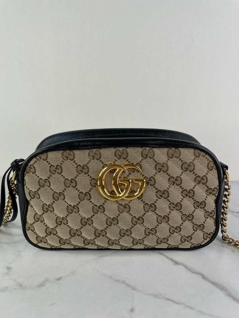 GUCCI Original GG canvas/black GG Marmont small shoulder/crossbody bag