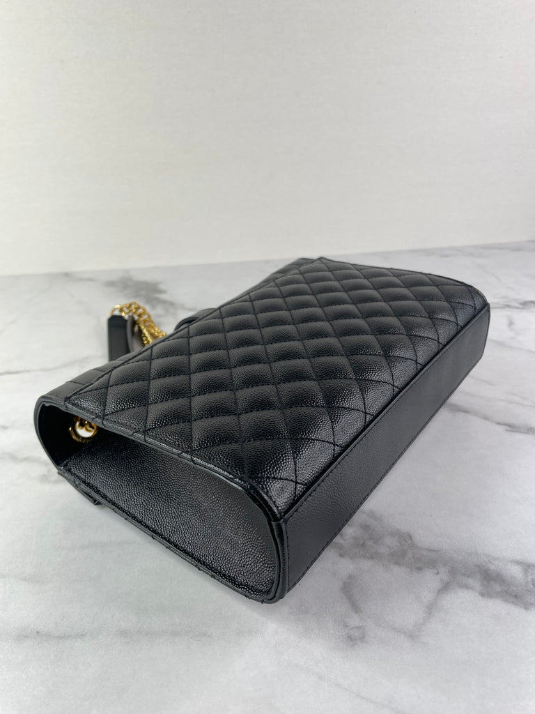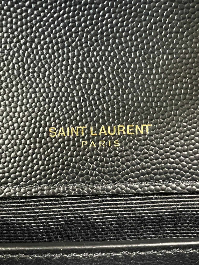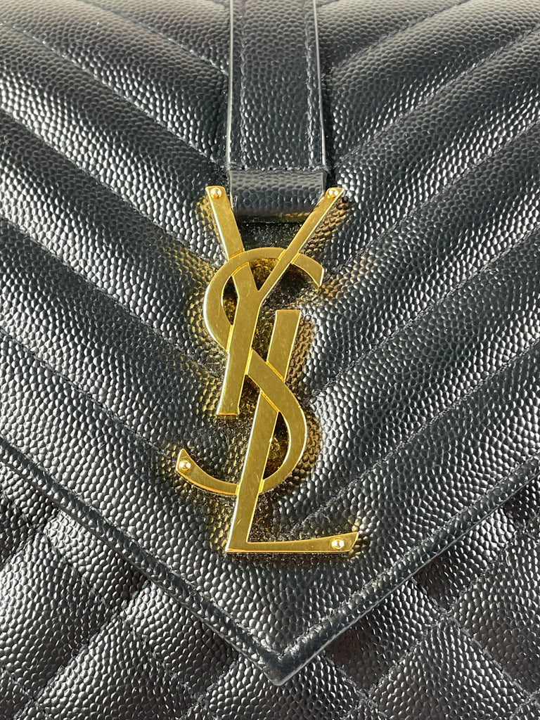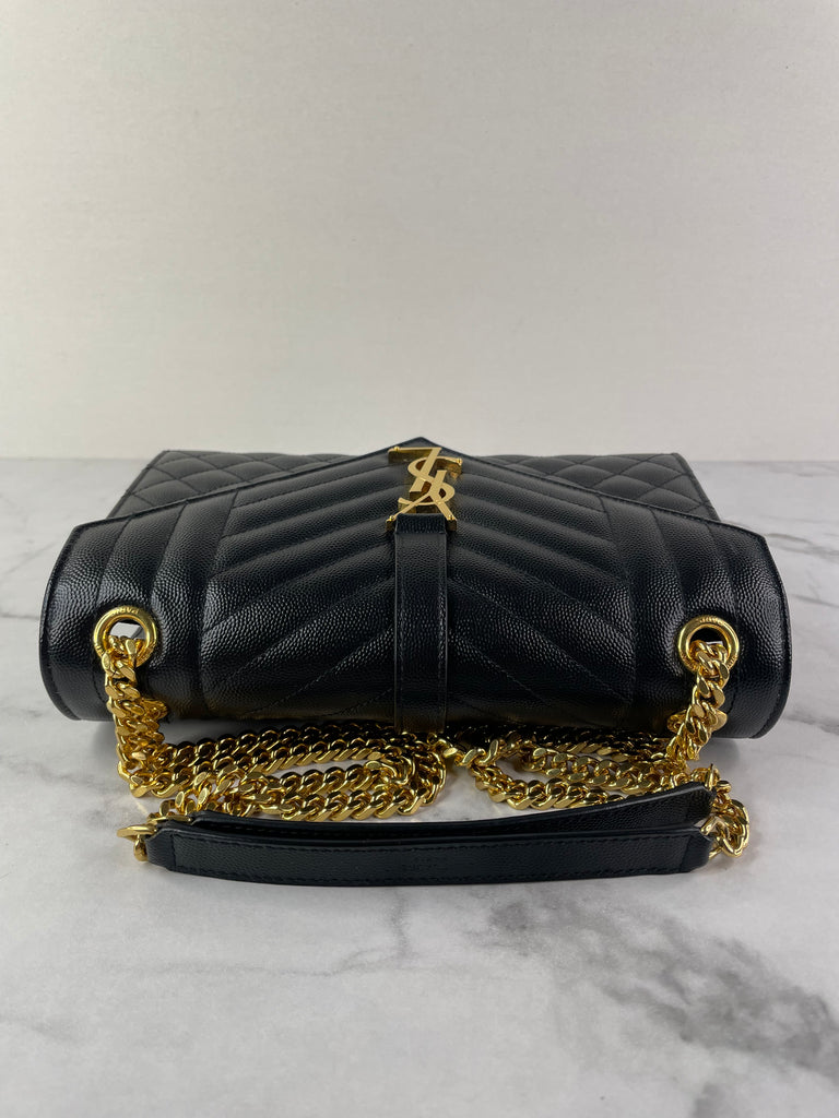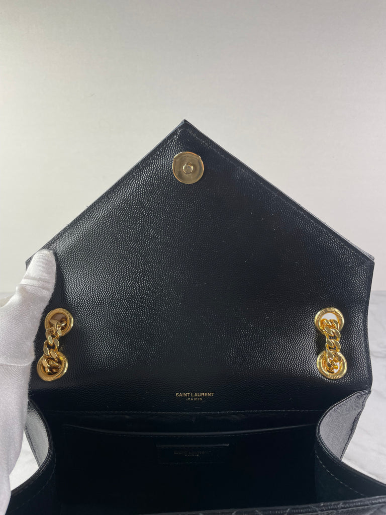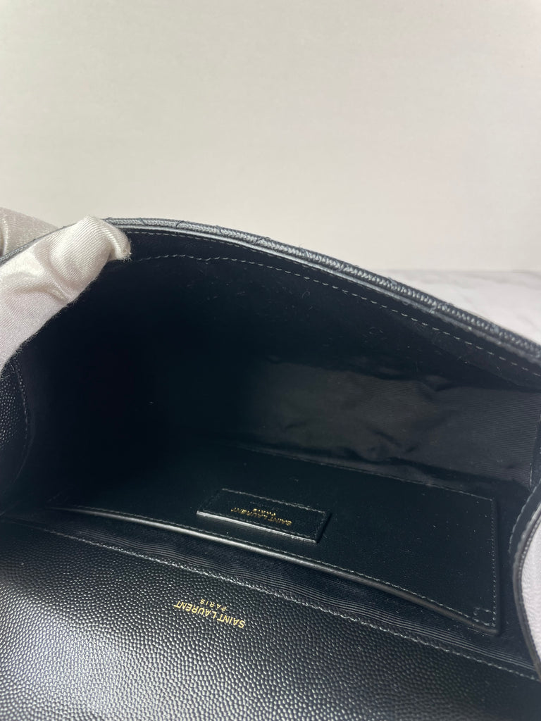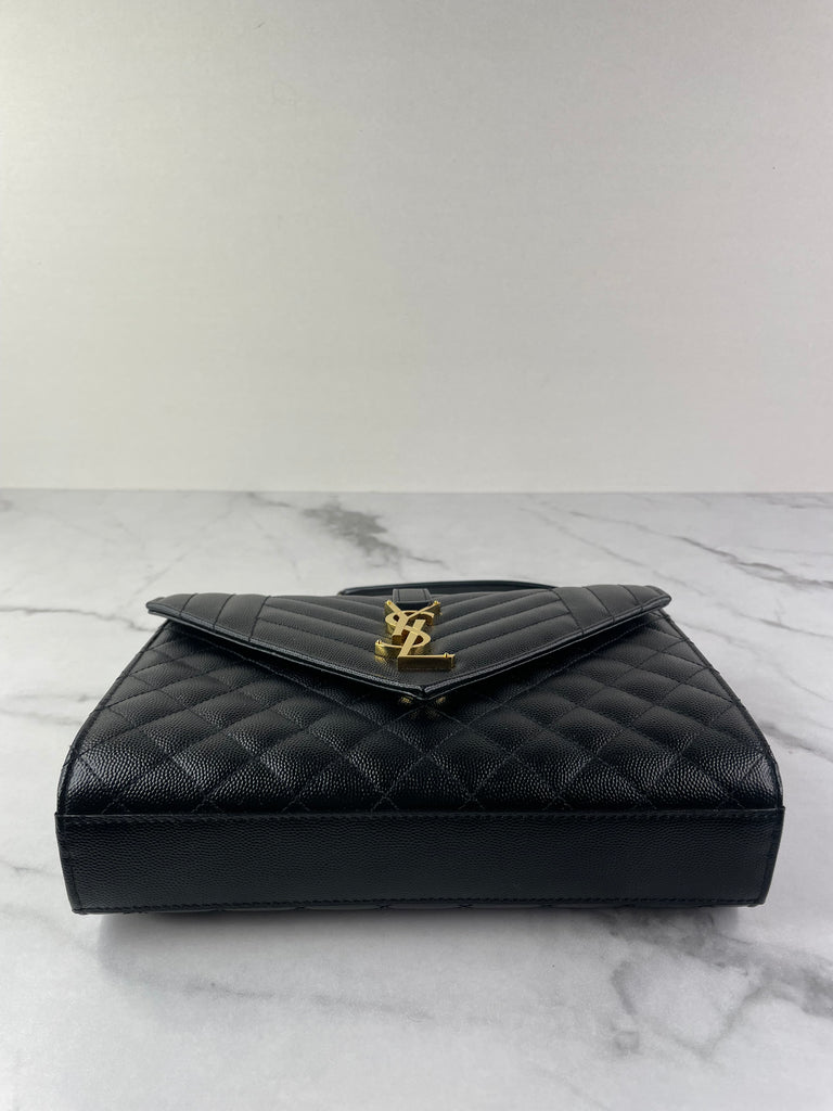 SAINT LAURENT Black ENVELOPE MEDIUM BAG IN MIX MATELASSÉ GRAIN DE POUDRE EMBOSSED LEATHER Crossbody/Shoulder Bag