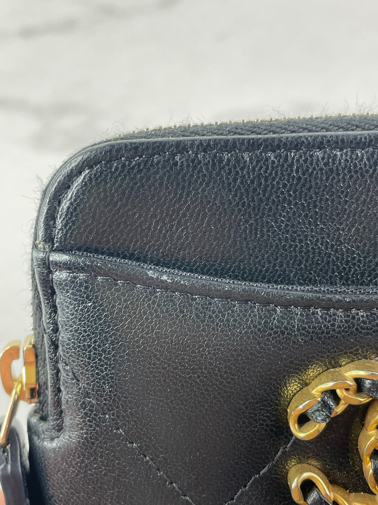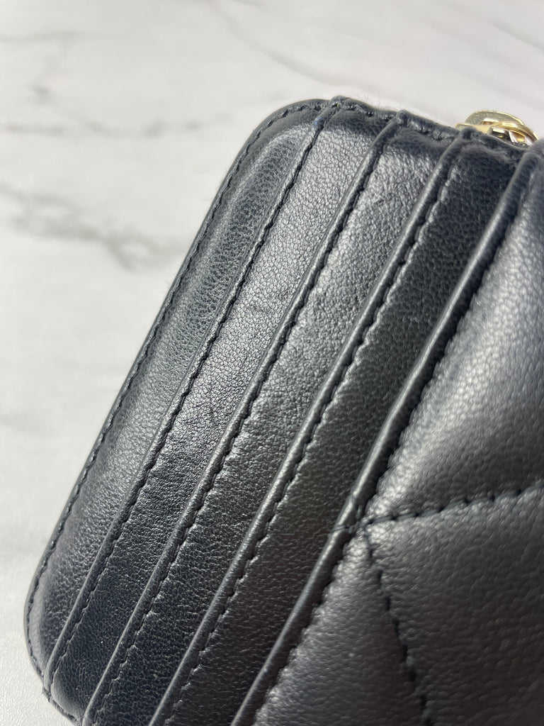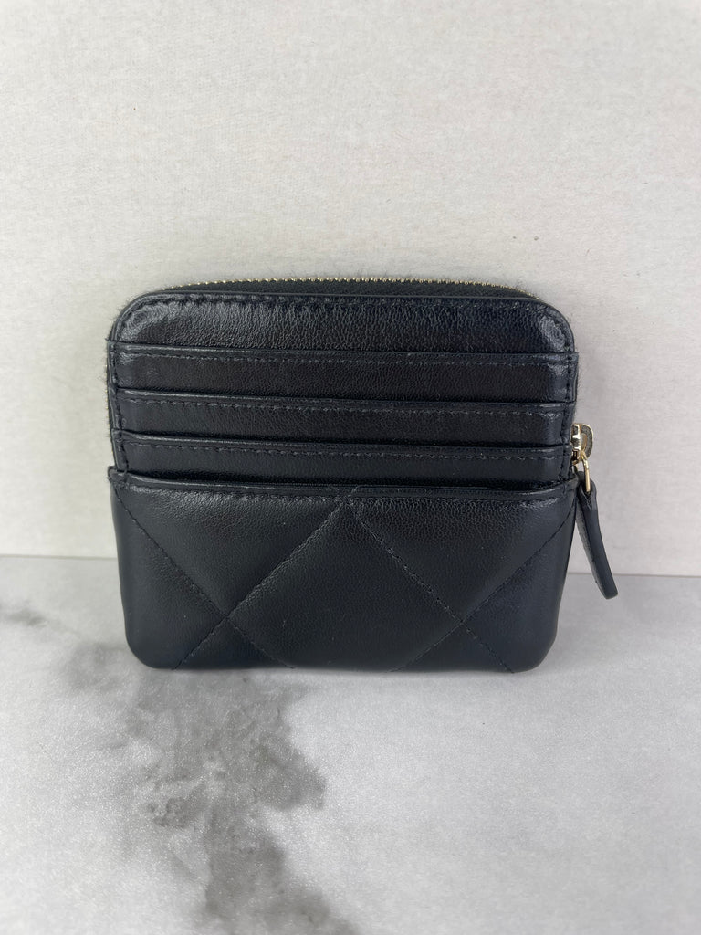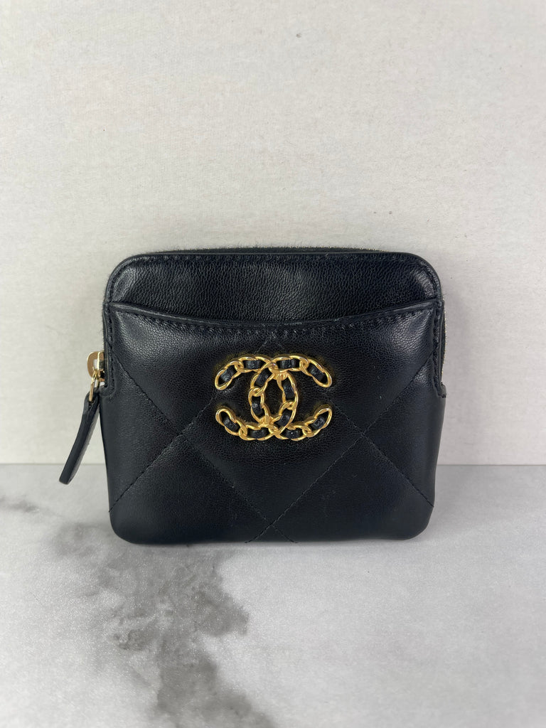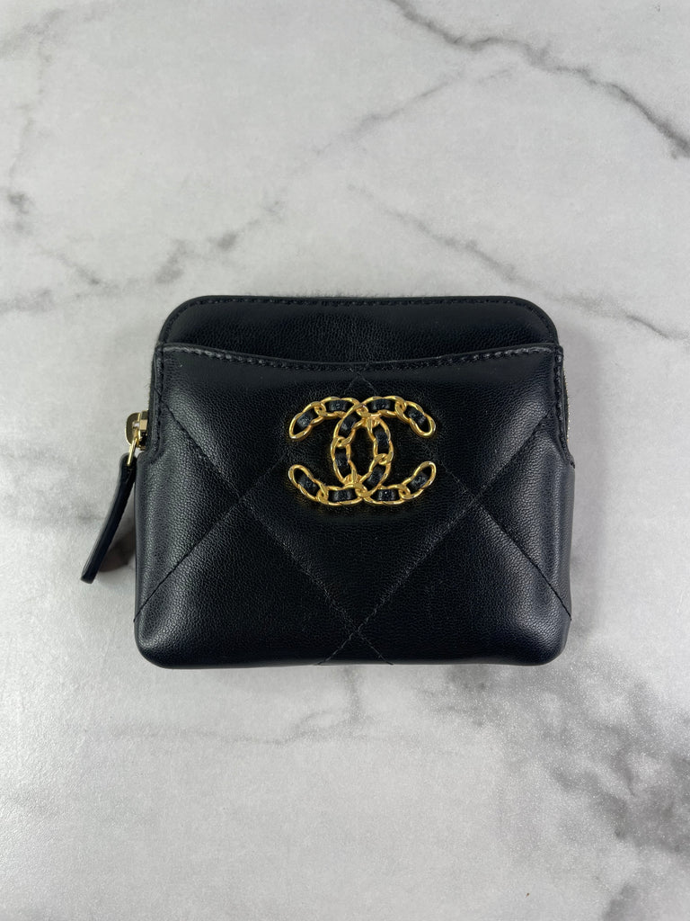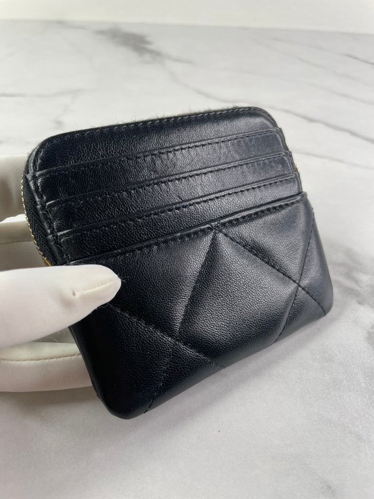 • CHANEL Black Lambskin Quilted 19 Zip Card Holder Wallet